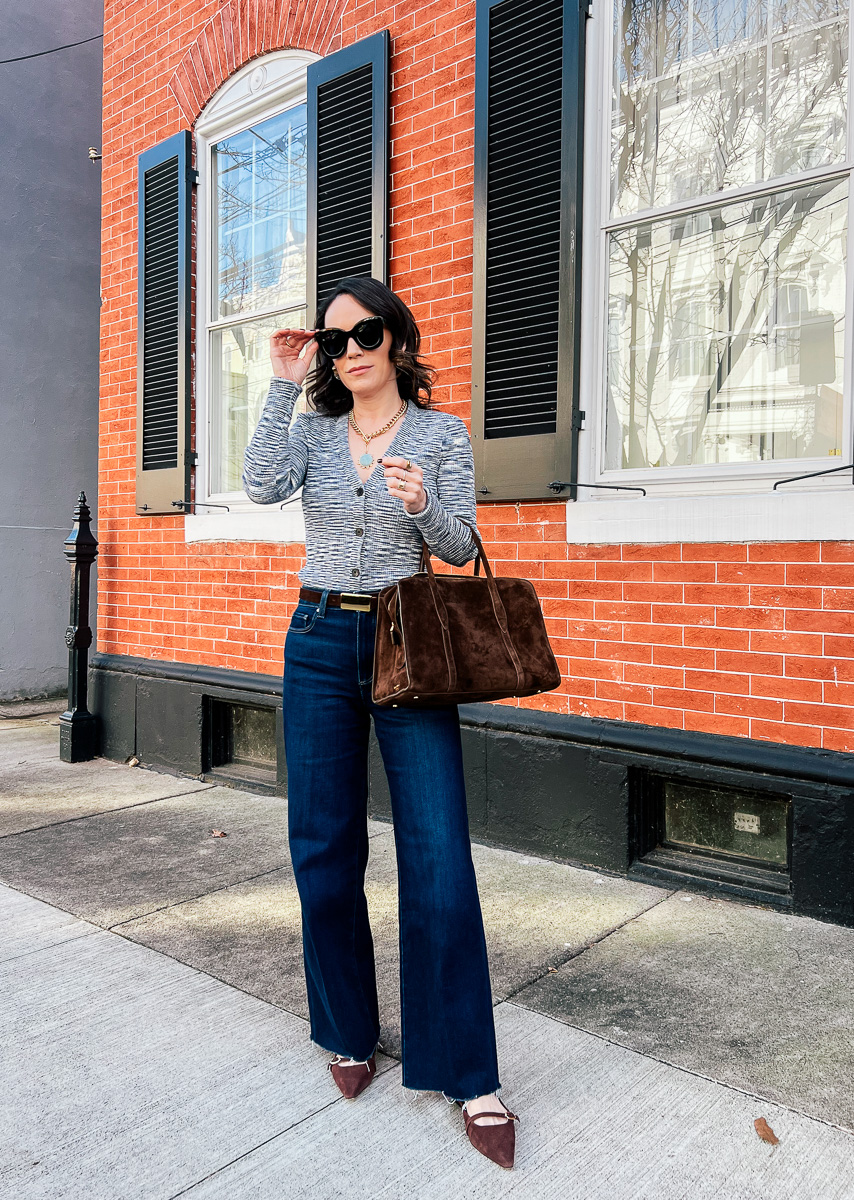 Quince is another brand that focuses on quality materials without the high price tag. They are a direct-to-consumer brand so they ship directly to the consumer from the factory. This is one of the reasons they are able to keep their pricing so affordable. The quality of this handbag is truly unmatched for the price. I am wearing it in the burgundy shade in the above photo and love how luxe it looks. It also has a long strap so you can wear it over your shoulder or crossbody.