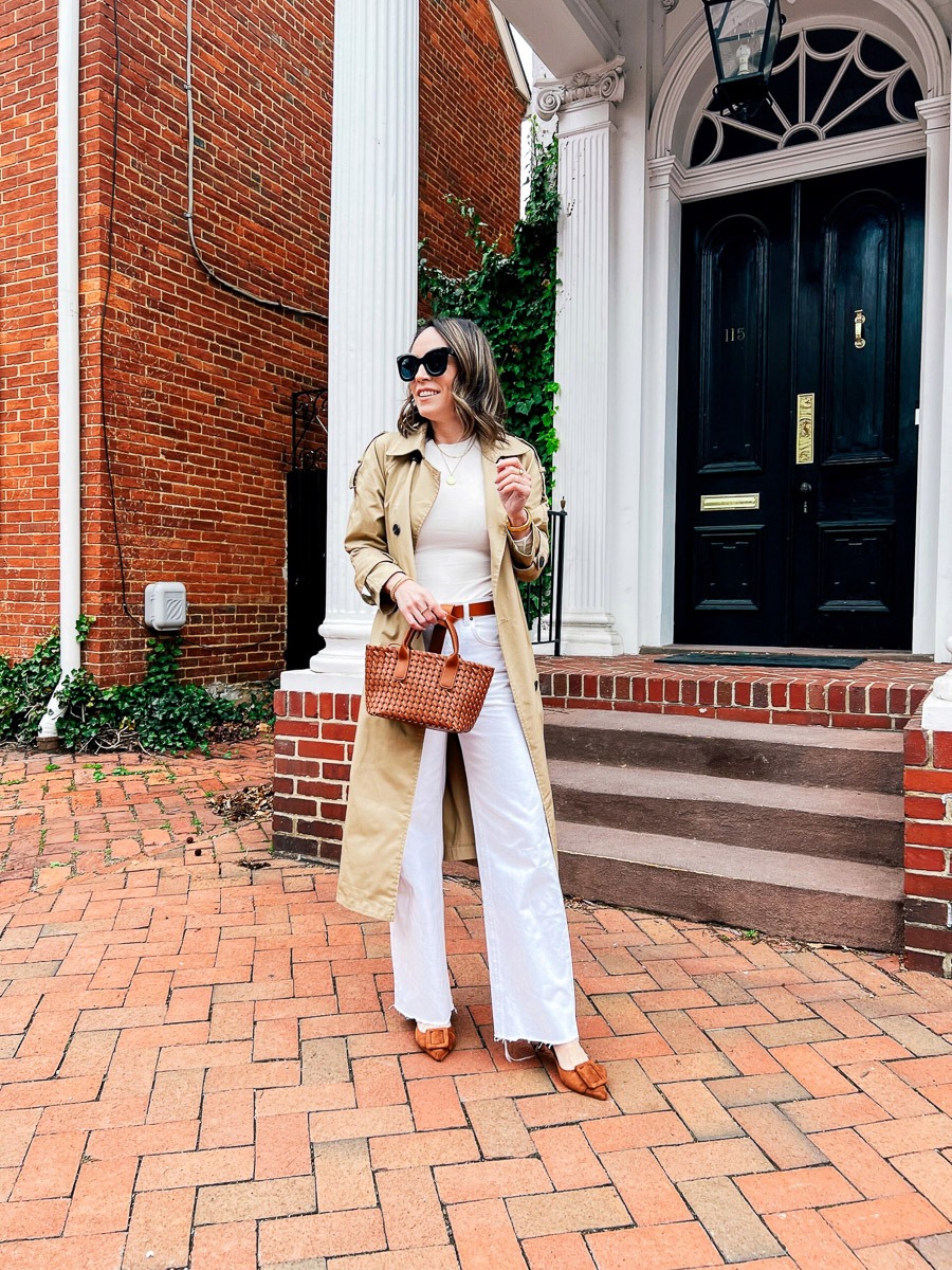 Depending on the season, it’s important to invest in a great trench coat and structured wool coat to wear over your work outfits. A midi length is always a classic option and the one I recommend going with but if many midi coats are too long for you, opt for a style that falls at the waist or slightly longer. Anything too short or too long will not be as timeless and could be difficult to style with all your outfits.