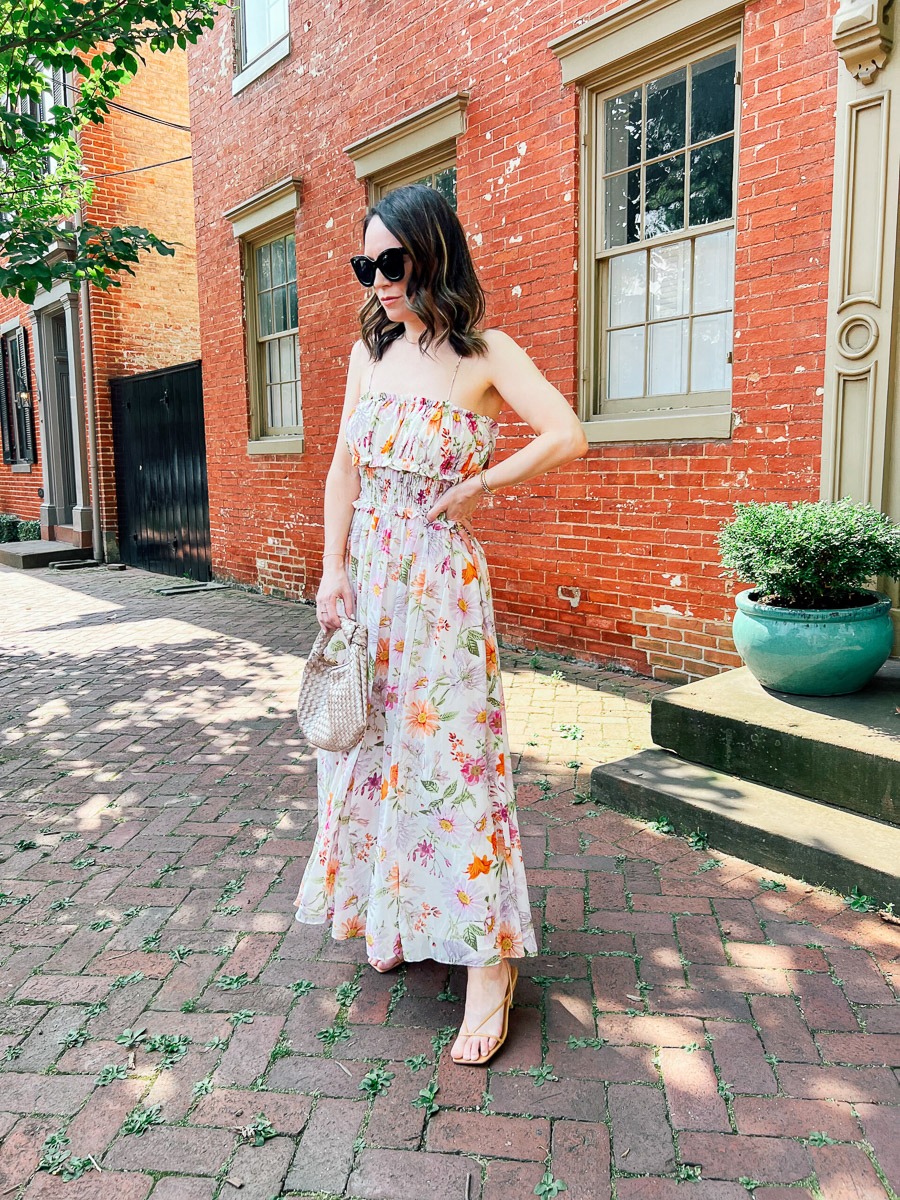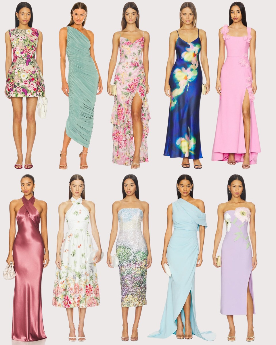 I like to err on the side of being a tad too fancy rather than not fancy enough when it comes to weddings. It’s one of the only times you can really get glam so take advantage of it and enjoy wearing something a bit more dressy. I like my dress to be the star of the look and often choose neutral and simple accessories to wear with my wedding guest dress. Here is a roundup of spring wedding guest outfit ideas at all price points.