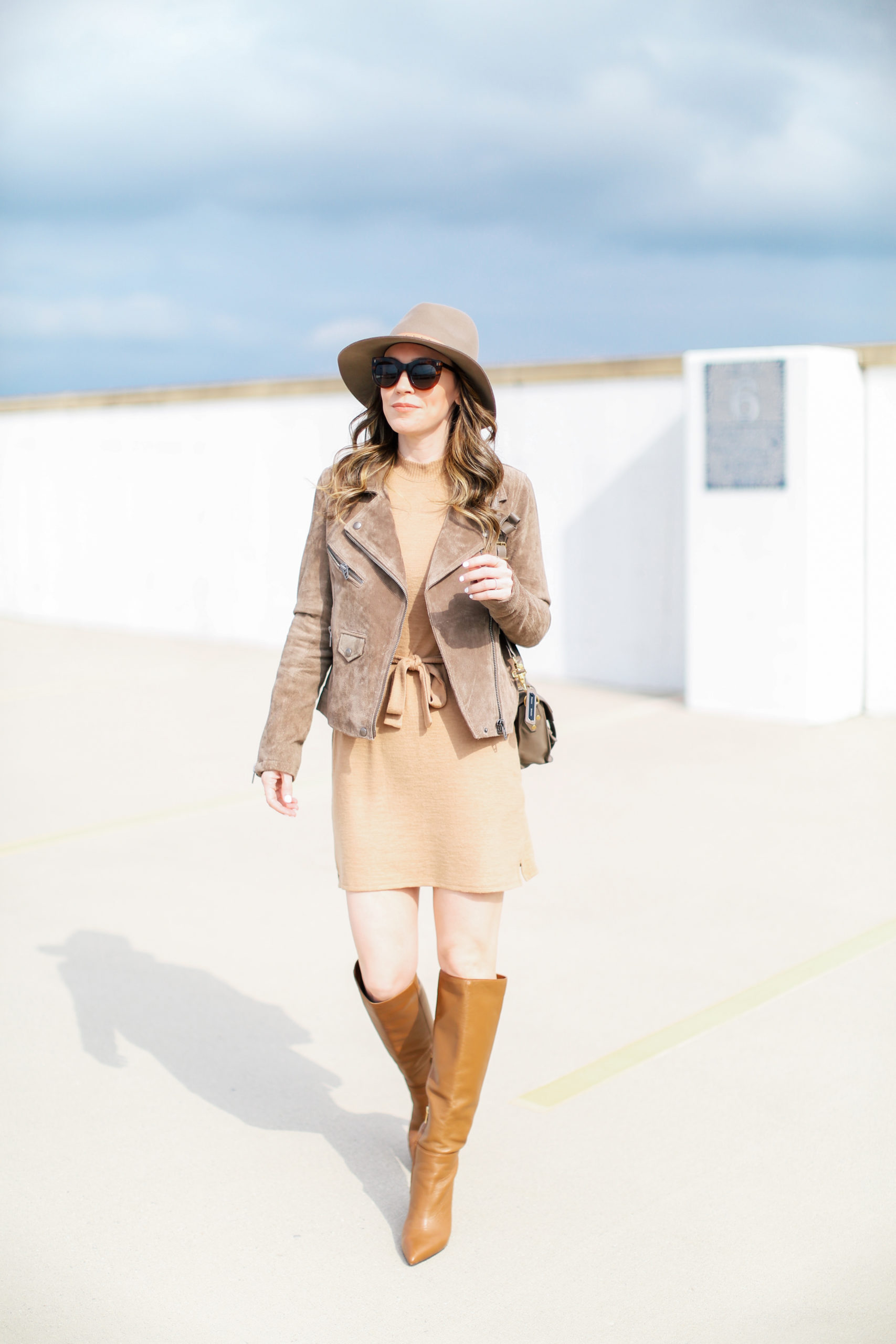 As soon as fall hits, I want to wear all the sweater dresses! Amiright?!! I love a good sweater dress (see some of my previous looks here, here and here) and this one is nice and lightweight and perfect to wear right now. It comes in a few colors but I was loving the tan color and mixed it with a bunch of other camel/neutral tones for this look. There are a ton of great sweater dresses under $100 so I rounded up my picks in the below widgets.