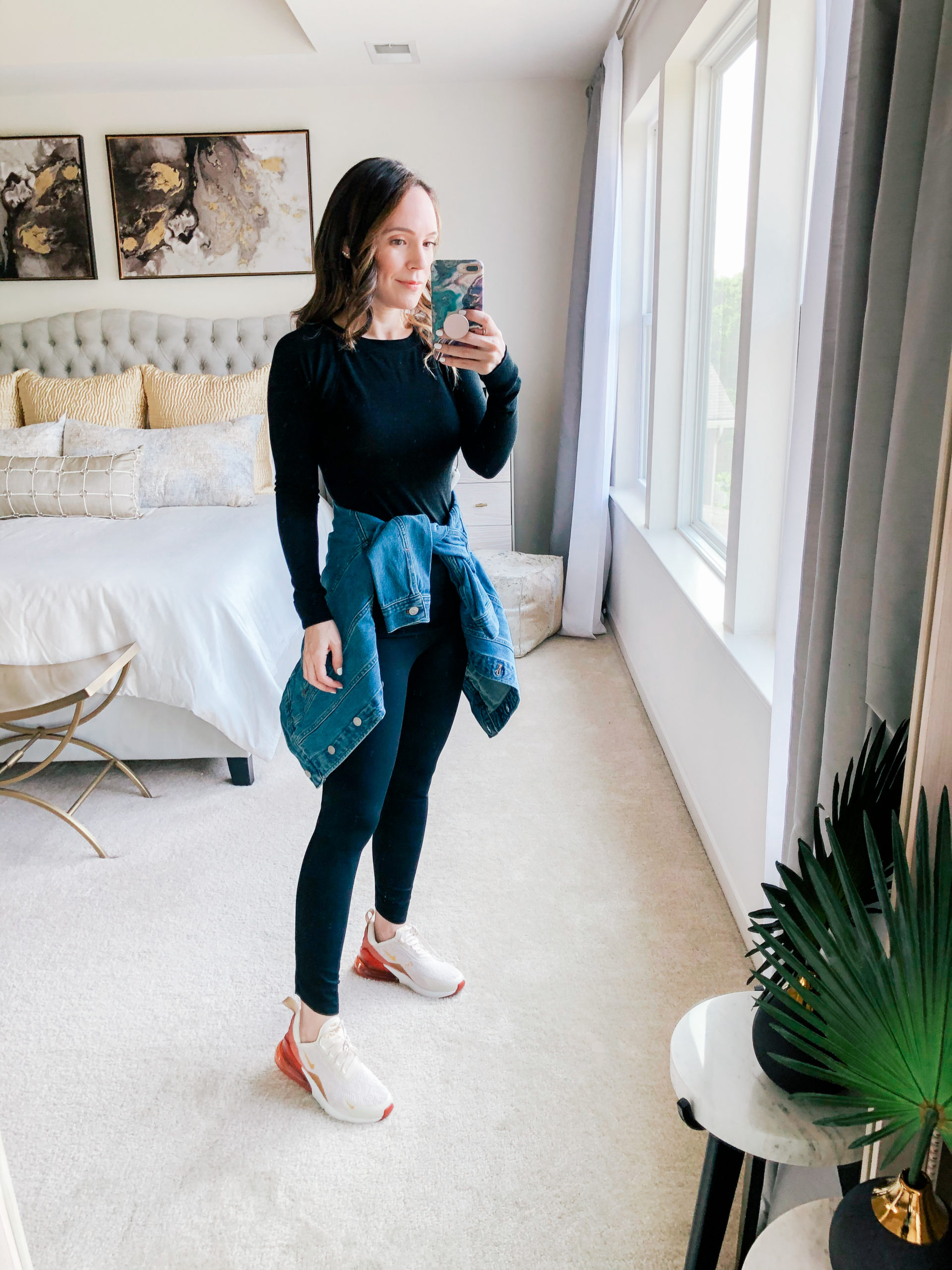 Tee – Treasure & Bond | Leggings – Zella | Jacket – Madewell | Sneakers – Nike