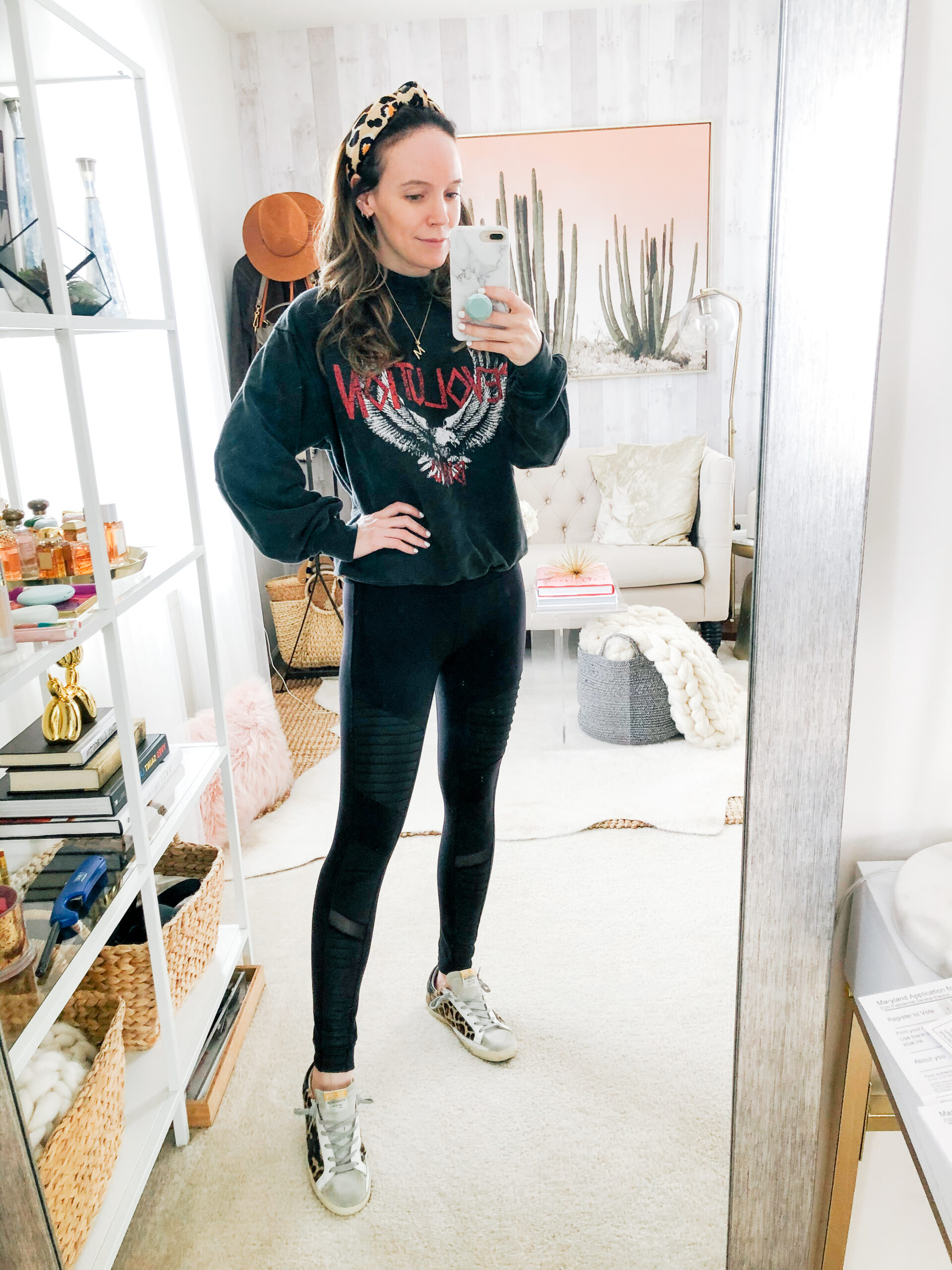 Sweatshirt – Anine Bing (similar) | Leggings – Alo Yoga | Sneakers – Golden Goose