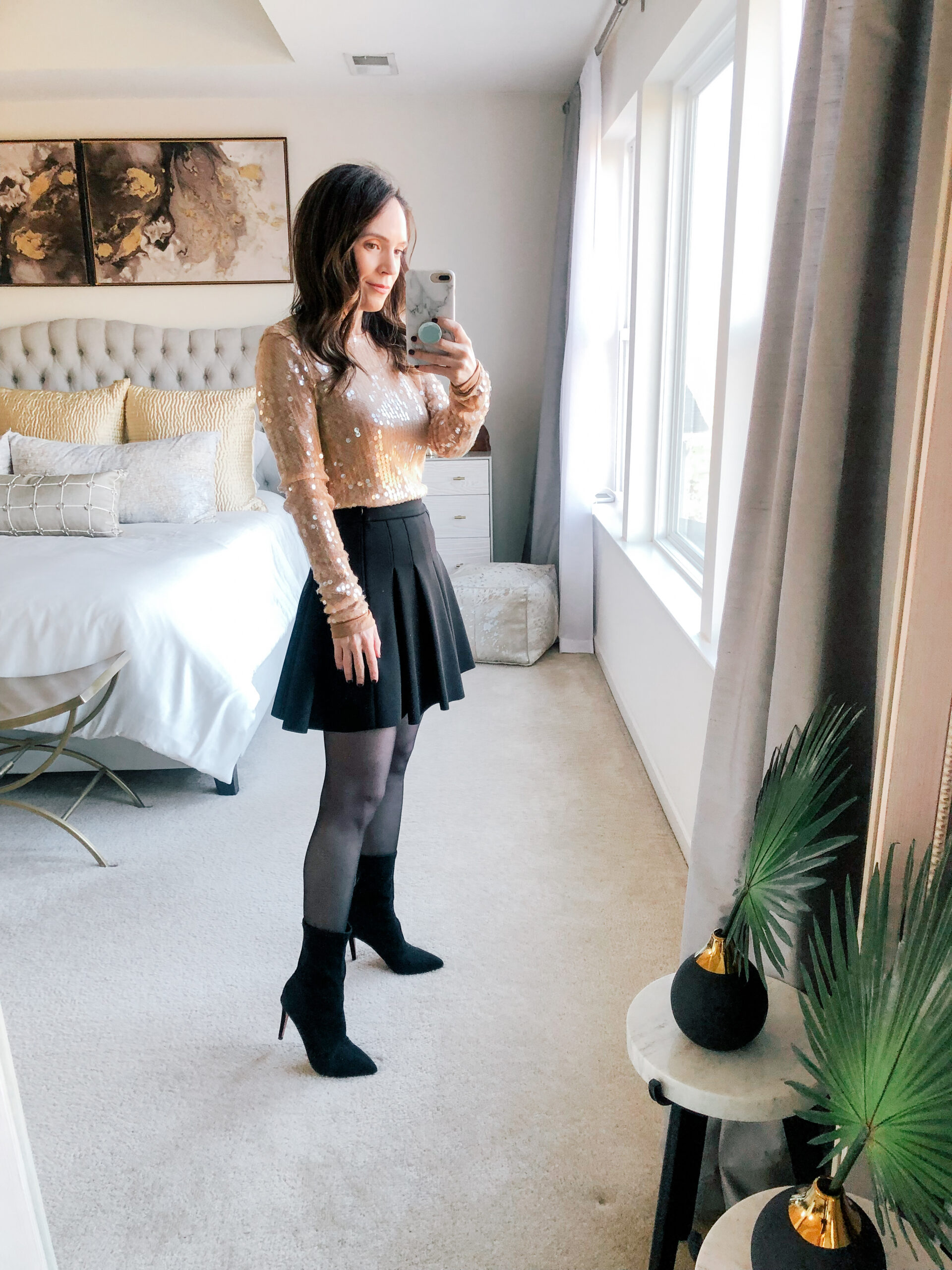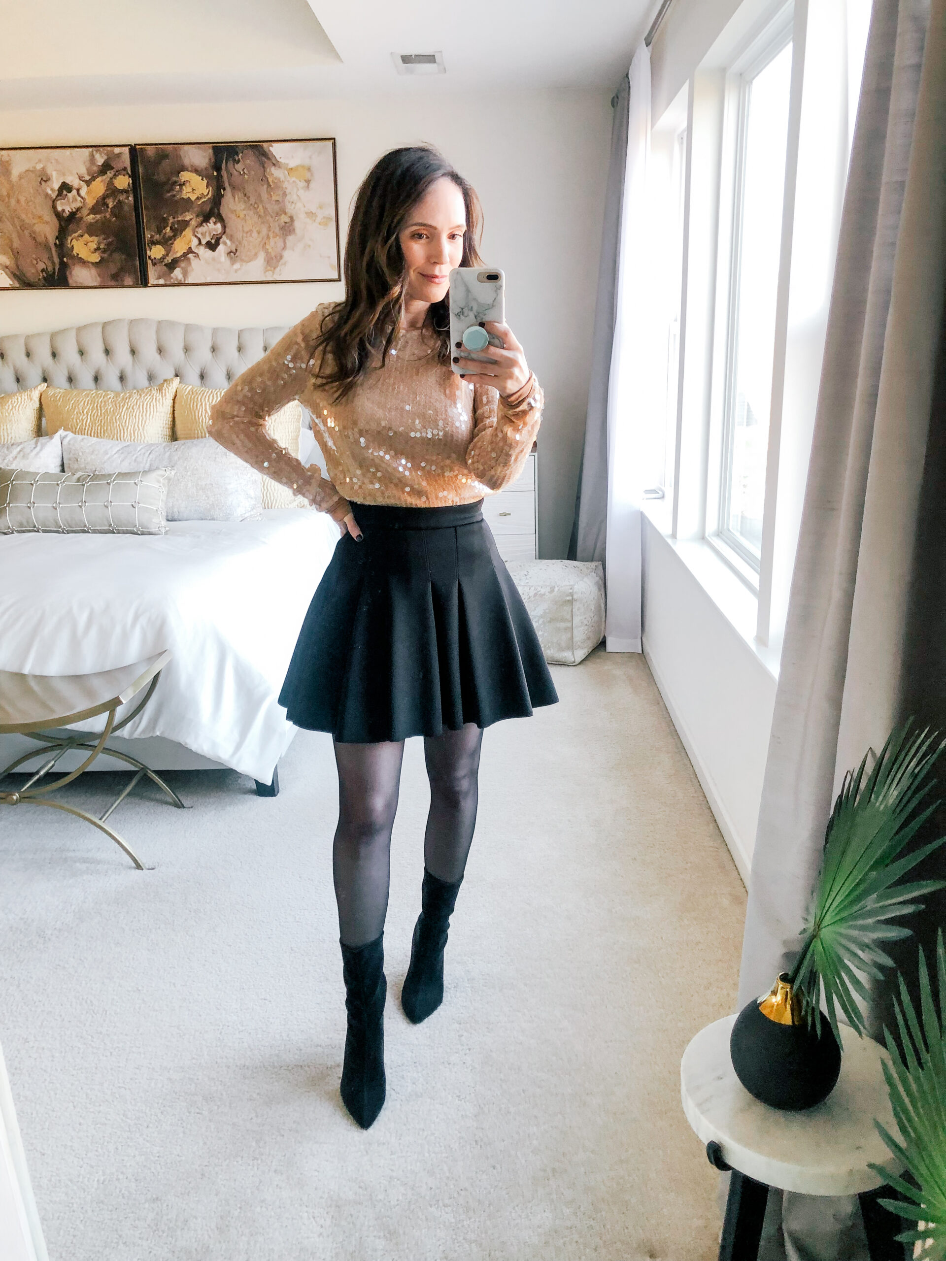 Top – Majorelle | Skirt – Alexander Wang (similar here) | Boots – Express | Tights – Wolford