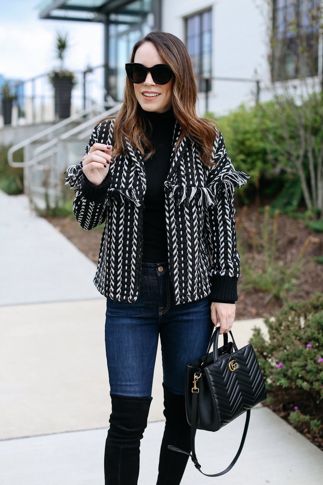 these type of jackets – the “in-between” weather jackets. When it’s too cold for a long cardigan but not yet full blown coat weather. I personally can’t stand the cold weather so I love jackets like these because I feel bundled up and cozy but not strangled or unable to move because of the vast layers of clothing I am wearing. Ha!