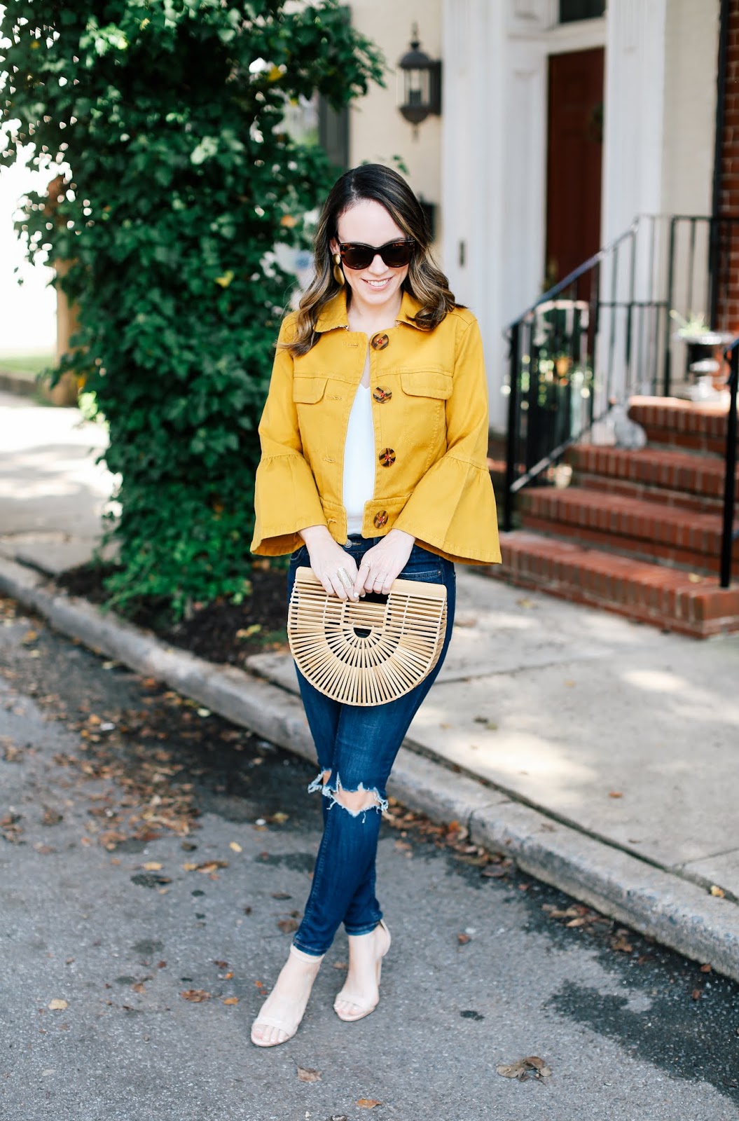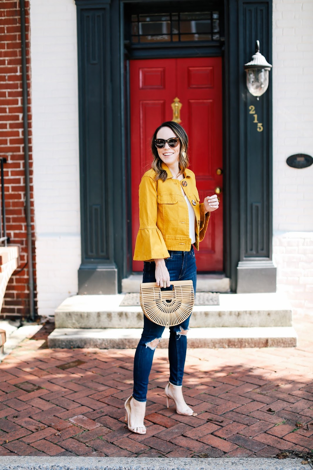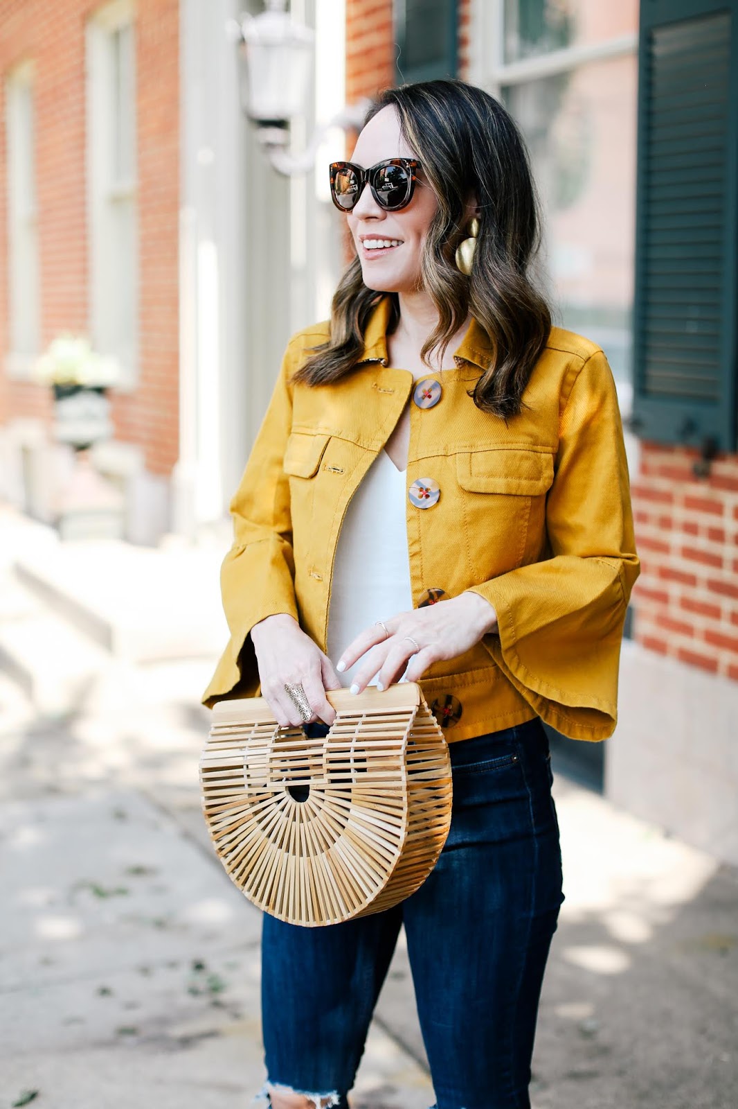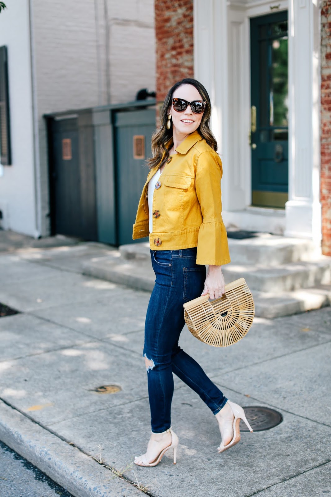 A great jacket, camisole and jeans is basically the ultimate transition outfit, amiright? I can wear it with boots, sandals, pumps or flats three seasons out of the year. I’m sure there are a million ways I can style this yellow jacket, but for me I just automatically go to what I love and enjoy the most. A simple camisole and jeans. When I first started blogging, I wanted to try to push myself out of my comfort zone and try unique outfits that could inspire others. But after a bit, I went back to what felt natural to me and what I would gravitate towards in my closet. I will still try different silhouettes or trends here and there, but the way I put outfits together will always be quite methodical and classic. I think it also makes it easy for all of you to recreate a look I wear with something you have in your own closet!