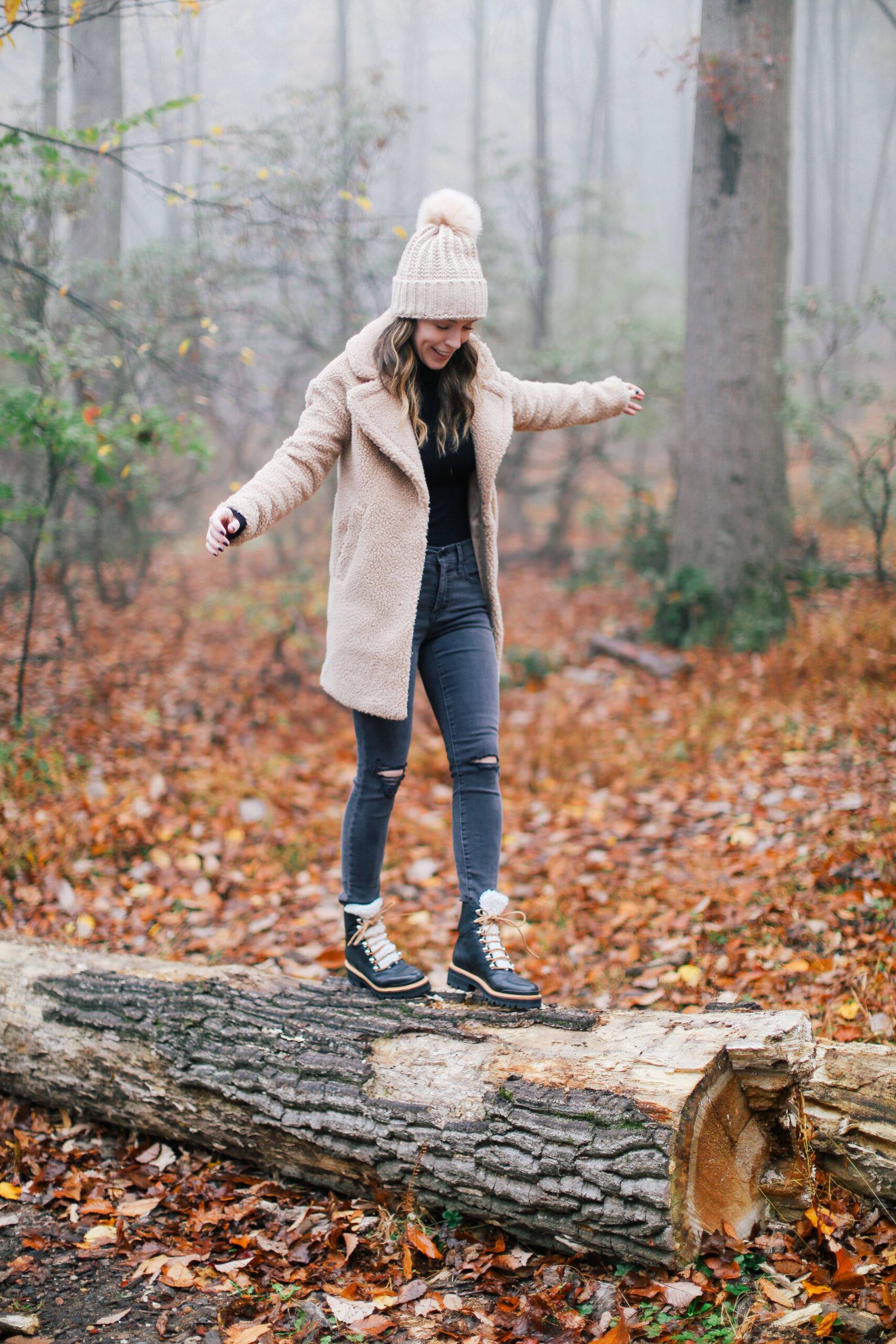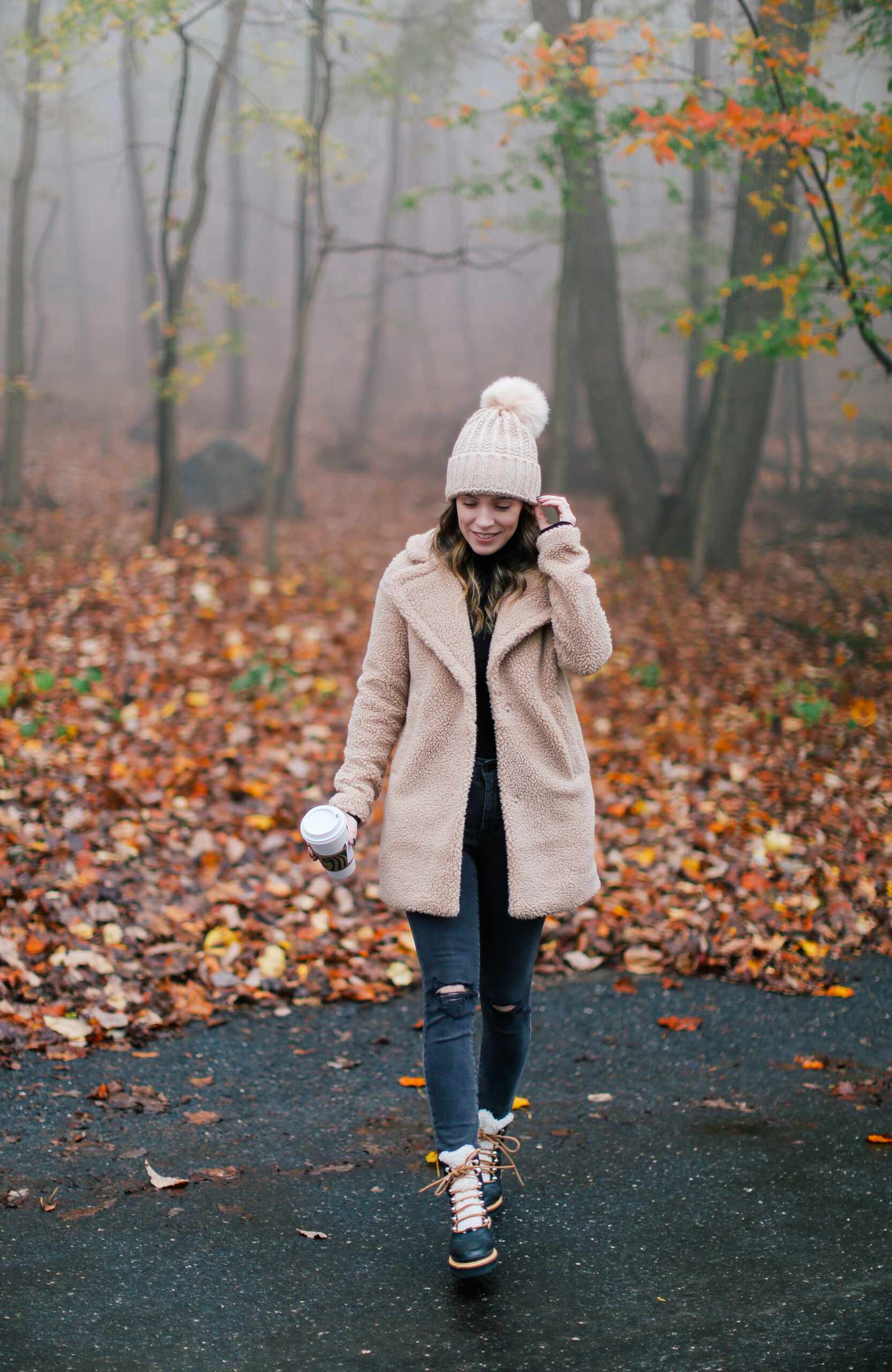 This is my third year with these boots and I still love them so much. They are so comfy and perfect for wearing all fall and winter. I had been eyeing this sherpa coat from Abercrombie and finally grabbed it on sale recently. It’s the perfect length for any on the shorter side (I’m 5’4″), but there is a longer version if you are tall. It’s warm but not too bulky and doesn’t make me look like a marshmallow. I’m so happy that beanie weather is here because I love giving myself an extra day of not having to wash my hair. LOL I love this brand of beanies but I could never find their hats with faux fur and they finally have started selling some. Yay! I bought the black and cream and love the slouchy fit. Speaking of slouchy fit, I also snagged two of these beanies for more casual outfits (and they are under $18!).