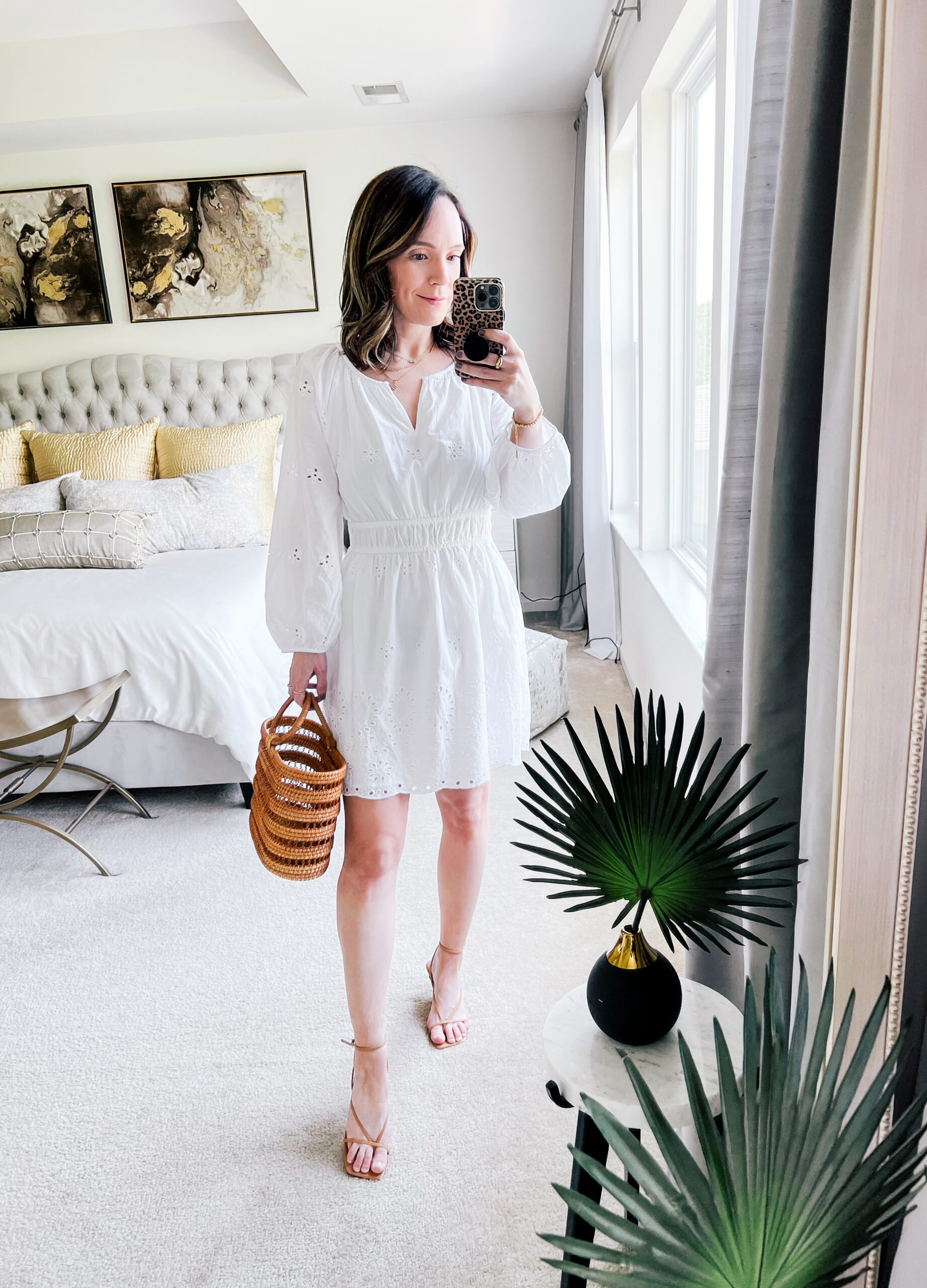 Dress – Target | Bag – Cult Gaia | Sandals – Jeffrey Campbell
