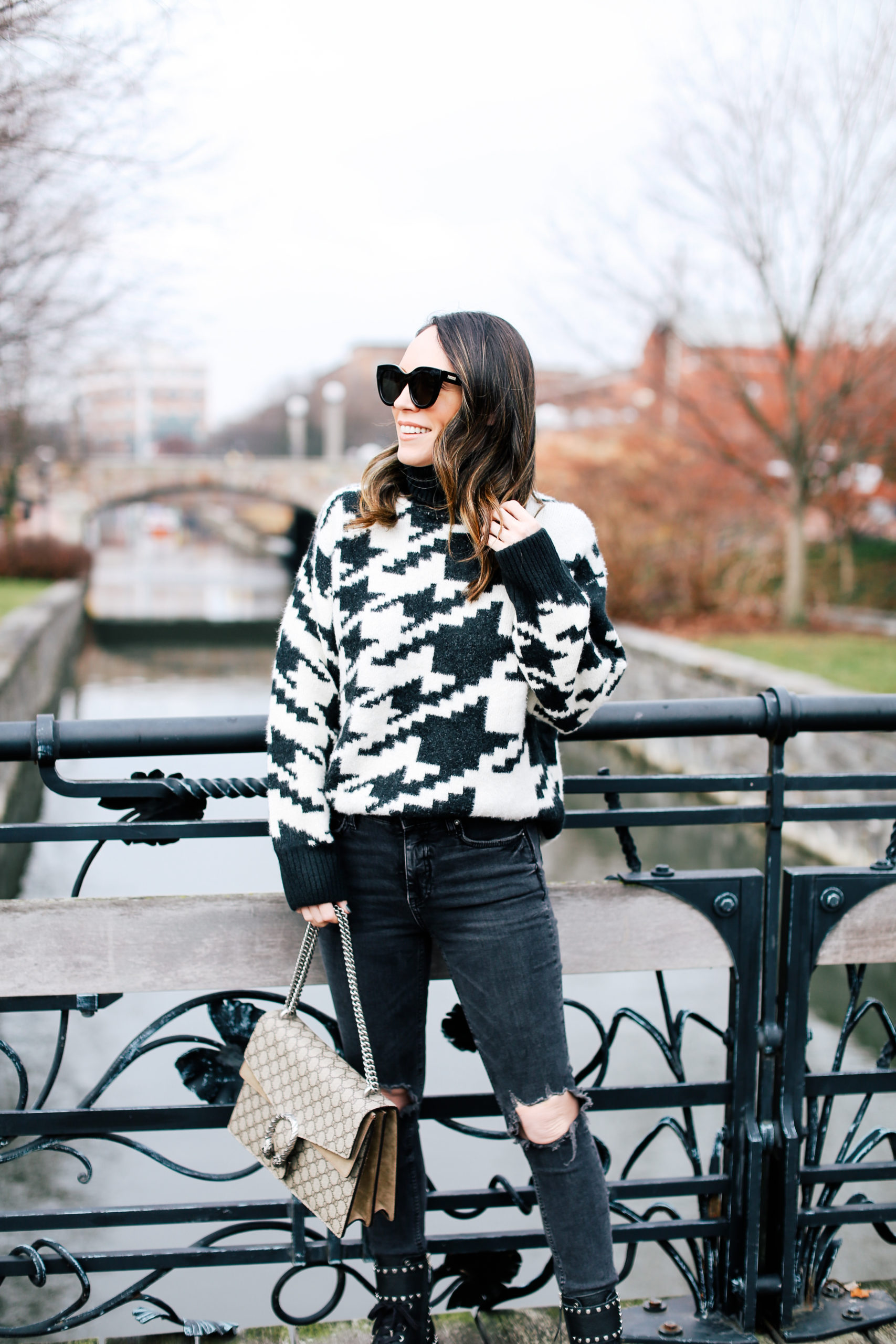 Sweater – H&M | Jeans (similar) – Free People | Boots – Sam Edelman (budget option here and obsessed with this style as well!) | Sunglasses – Le Specs | Bag – Gucci