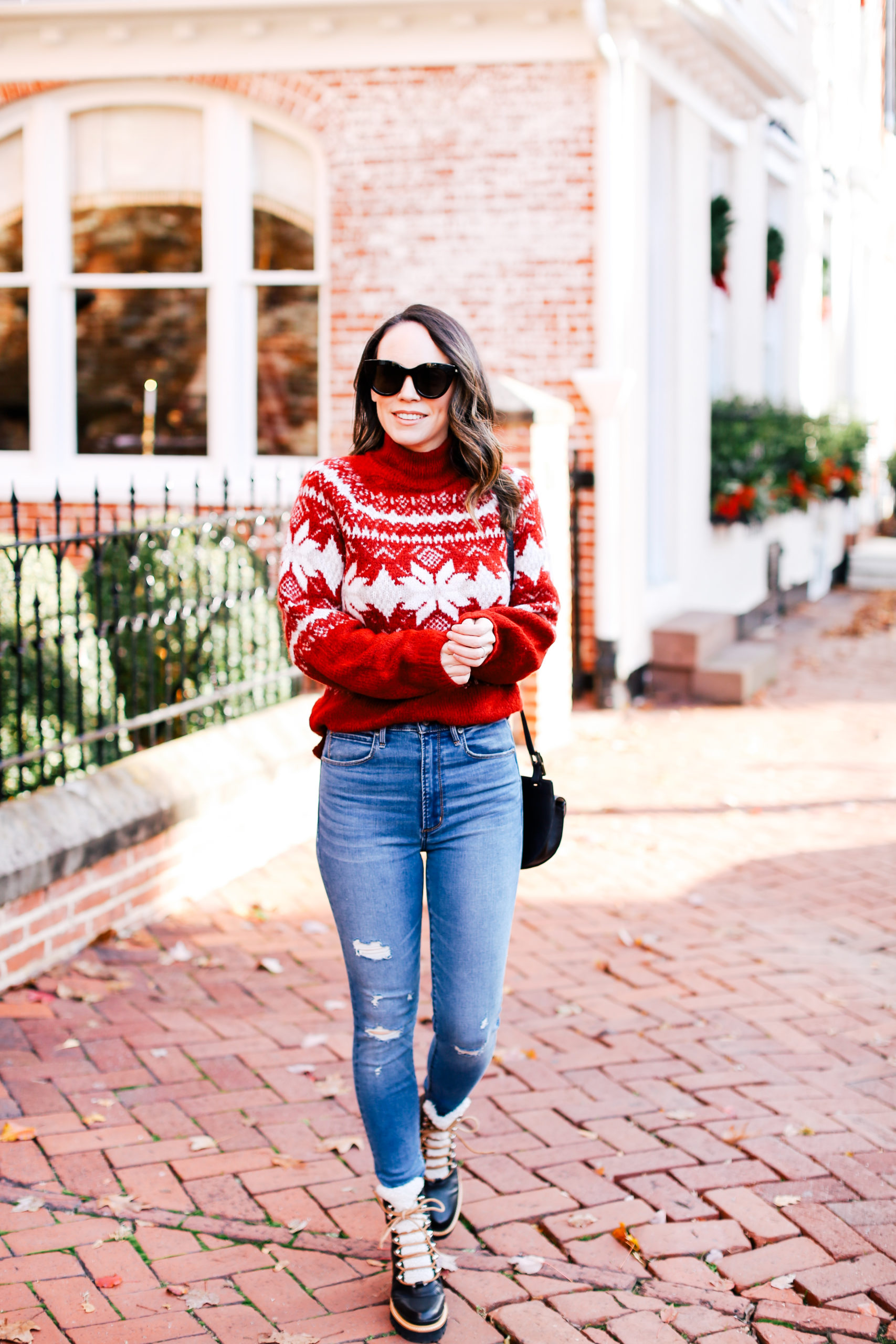 It’s not officially winter (well isn’t actually winter for another week, but you get what I’m saying LOL), until I break out the fair isle sweaters. I am a huge print lover (leopard, stars, stripes, camo, the list goes on….) so it’s no surprise that I absolutely love fair isle. It feels a bit festive but is still great to wear all winter long. My particular sweater is almost sold out but I shared a ton of other styles and price points in the widgets below. And if you have been thinking about getting these boots, they were recently restocked in all sizes but are selling quickly so act fast if you are considering them! I find them so comfortable and can wear them in any weather which I love!