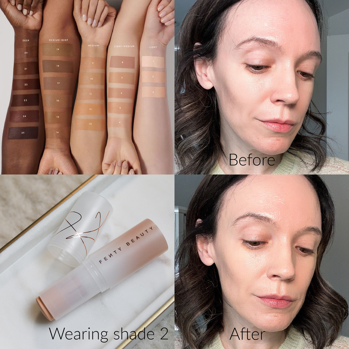 This is Fenty Beauty and they are known for an inclusive shade range. There is a total of 25 shades to choose from and they do a fantastic job of providing a shade for nearly every skin tone.