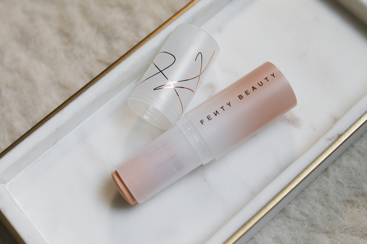 I’m typically a fan of liquid or cream foundations since my skin has really changed over the past few years. I need the extra moisture that liquid foundations or skin tints provide but I do love the ease of a foundation stick. I have heard amazing things about the Fenty Beauty Eaze Drop Stick Foundation so I decided to order one to test. Stick foundations often provide more coverage and can be creamy though not as moisturizing as liquid formulations. They are quick and easy to apply and many are quite long wearing.