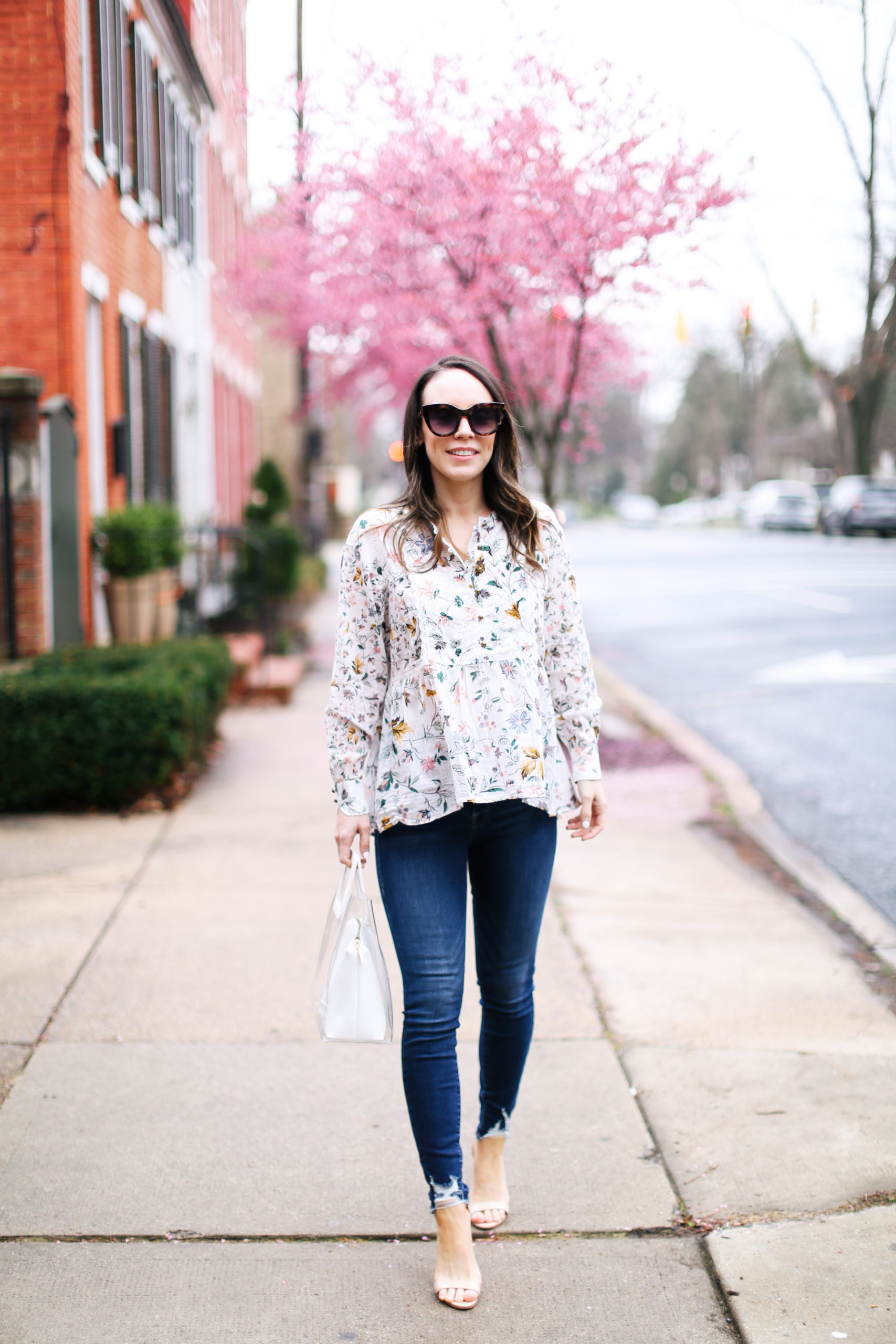 Spring is slowing showing up here and it’s been a bright spot in all the chaos that has been going on right now. The trees are in bloom and no coat is needed anymore! I’ve been hearing great things about Good American jeans for awhile now and when I tried on a pair last year, they didn’t wow me. But I guess I tried on the wrong pair, because I ordered a different style this time and went down a size and they are amazing! The fit is incredibly stretchy and hugs every last curve. There is no gaping in the waist and I love this particular pair because they are high waisted with little to no distressing. I paired them with this flowy boho top and sandals, but they will go with absolutely anything and everything in my closet.