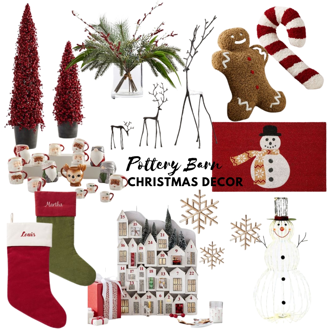 Faux Berry Trees | Faux Juniper Berry Arrangement | Gingerbread Pillow | Candy Cane Pillow | Mugs | Bronze Reindeers | Doormat | Stockings | Advent Calendar | Wooden Snowflakes | Light Up Snowman