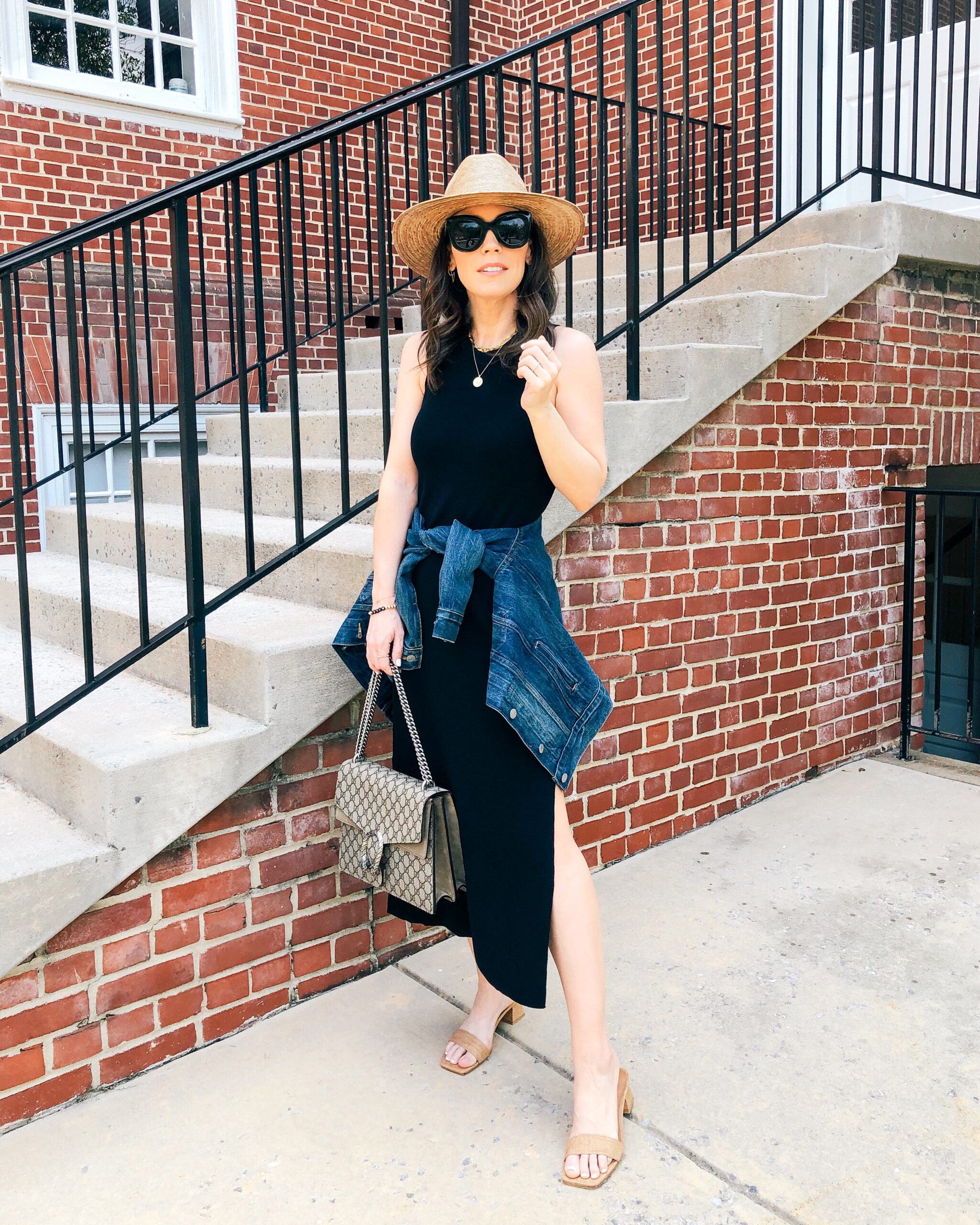 Dress – Express | Sandals – Stuart Weitzman | Bag – Etsy | Sunglasses – Amazon Top – Express | Shorts – Agolde | Necklaces – Here