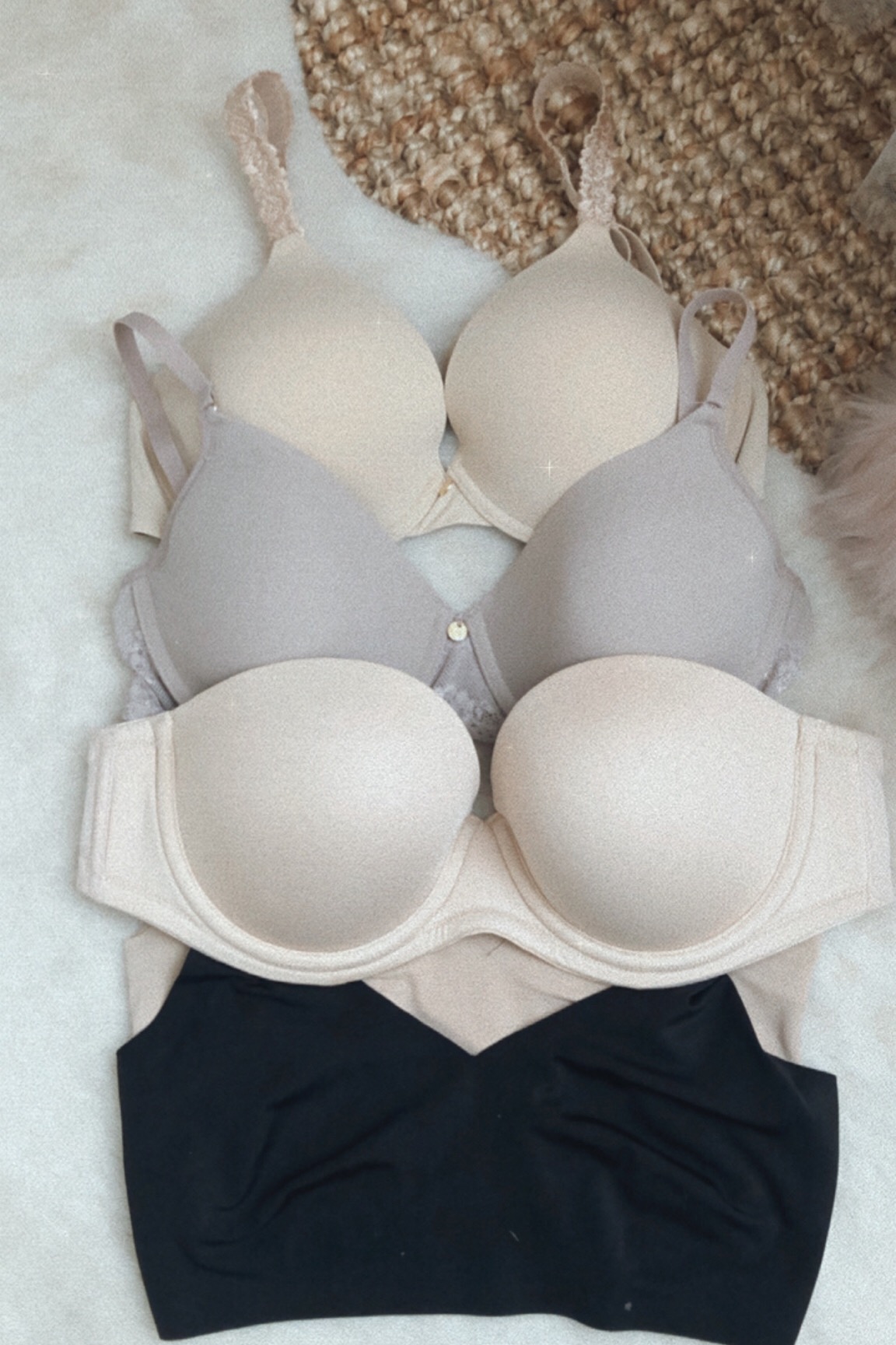 Bra from top to bottom: Natori, Natori, Wacoal Strapless, True and Co wireless bras here and here