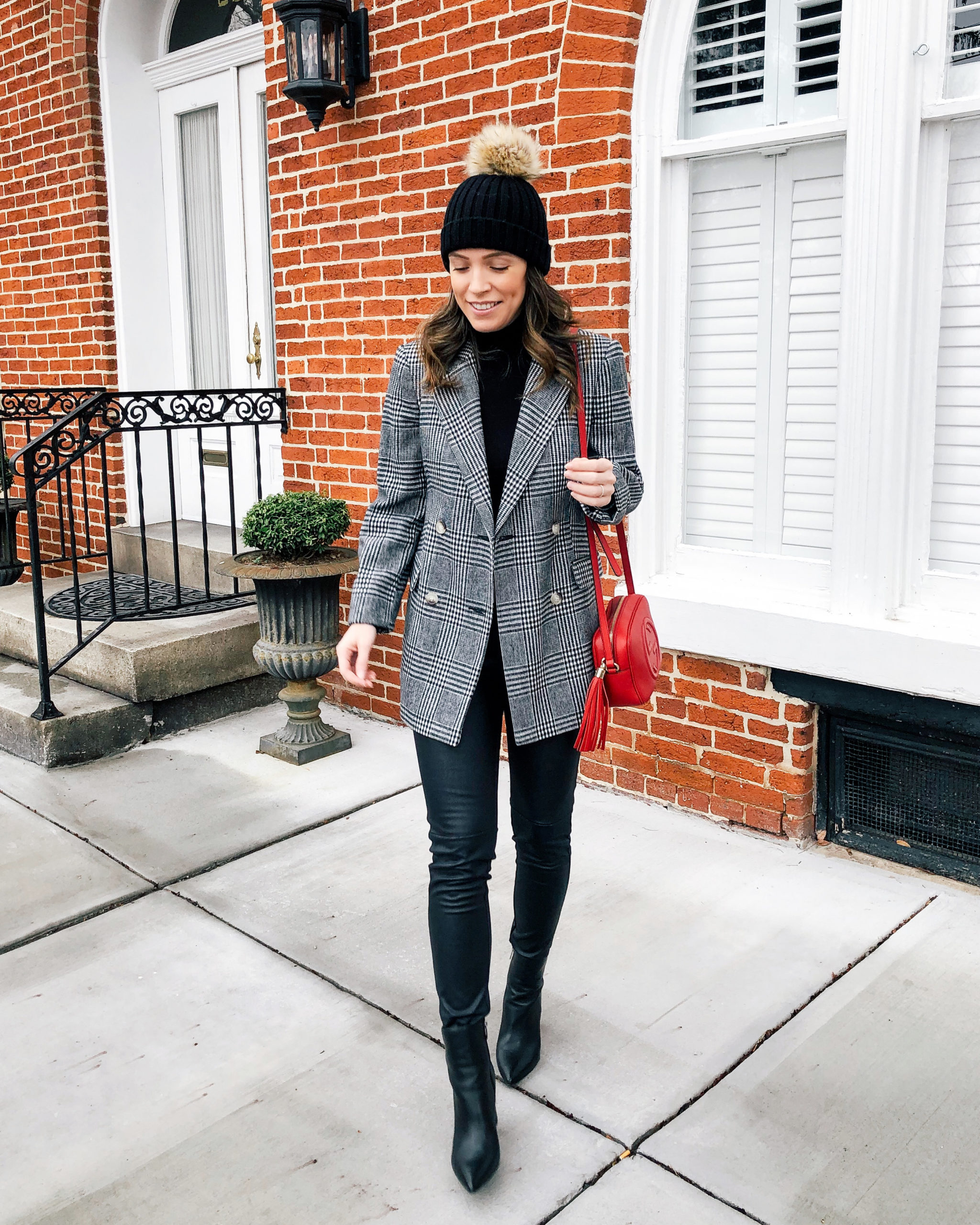Blazer – Topshop | Turtleneck – Halogen | Leggings – Halogen (similar) | Boots – Marc Fisher | Beanie – J.Crew | Bag – Gucci