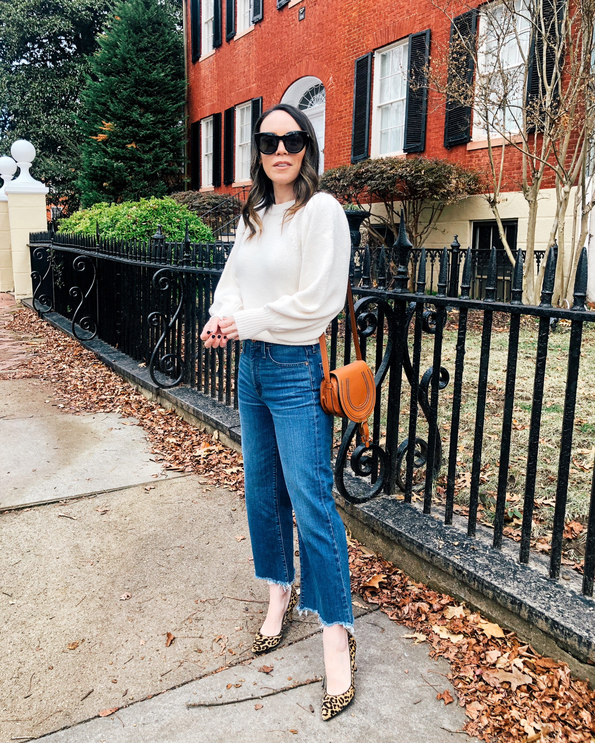 Sweater – 525 | Jeans – J.Crew (similar here) | Heels – Gianvito Rossi | Bag – Chloe | Sunglasses – Le Specs