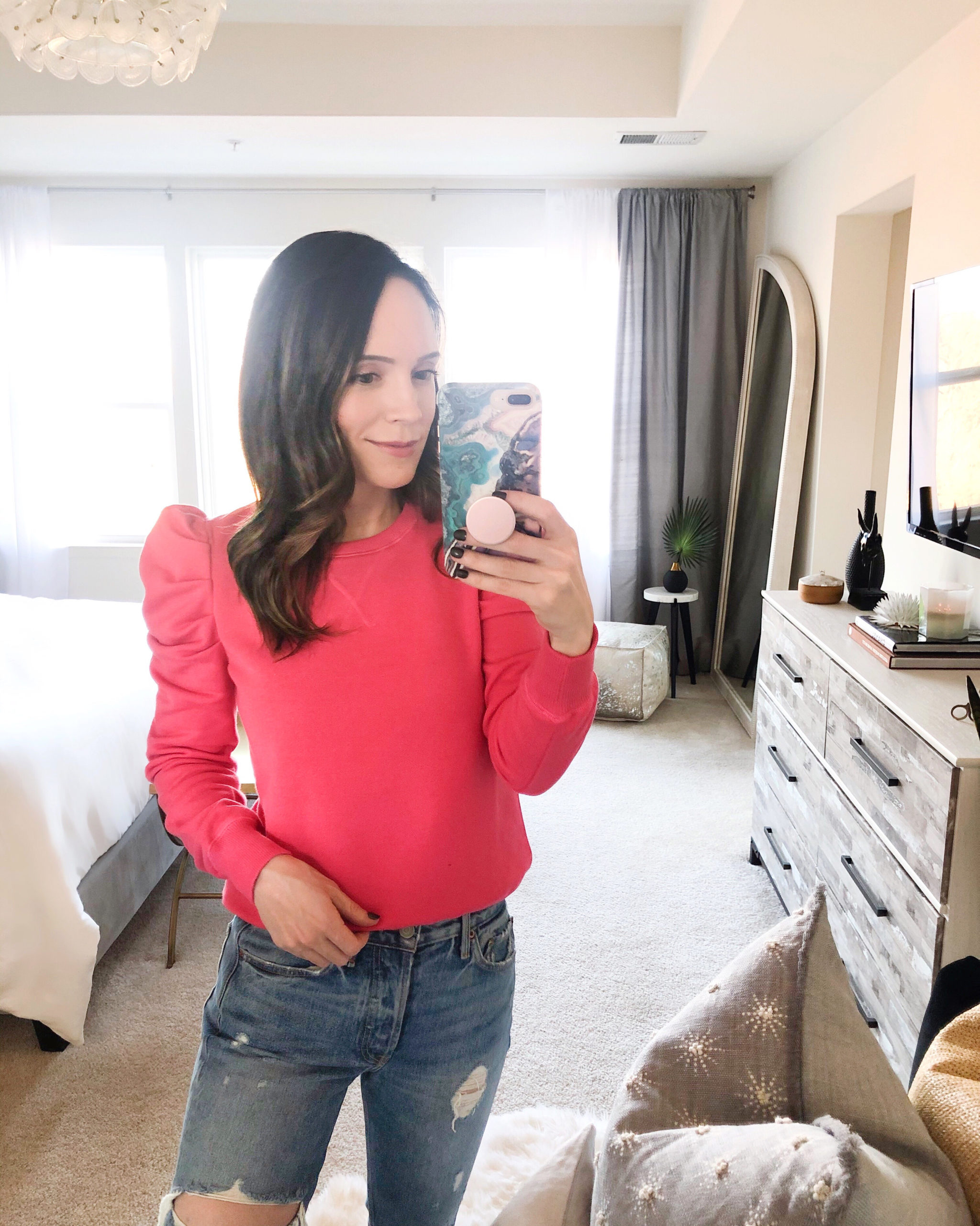 Sweatshirt – Rebecca Minkoff | Jeans – Grlfrnd