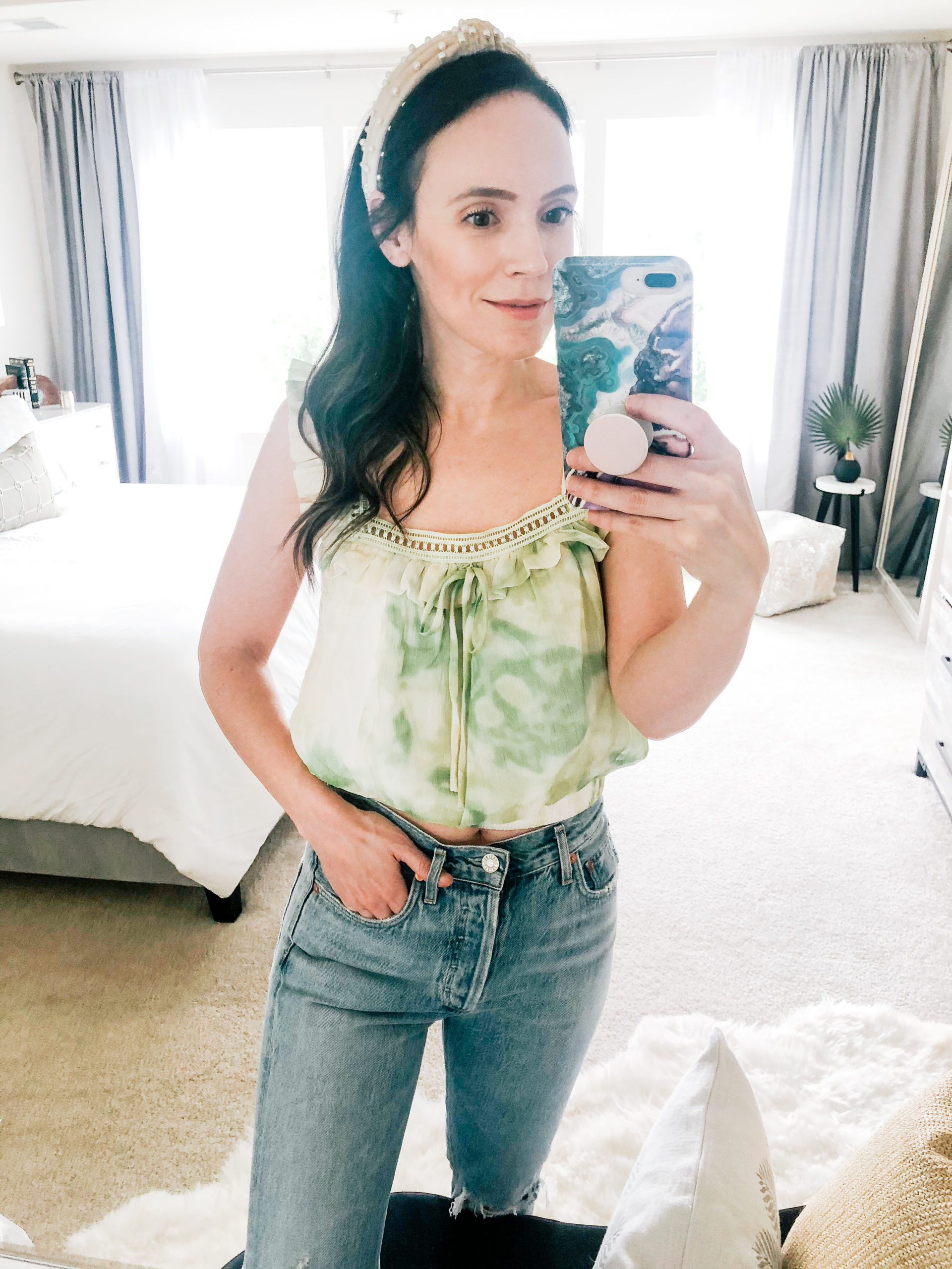 Top – Line & Dot | Jeans – Agolde | Headband – Amazon