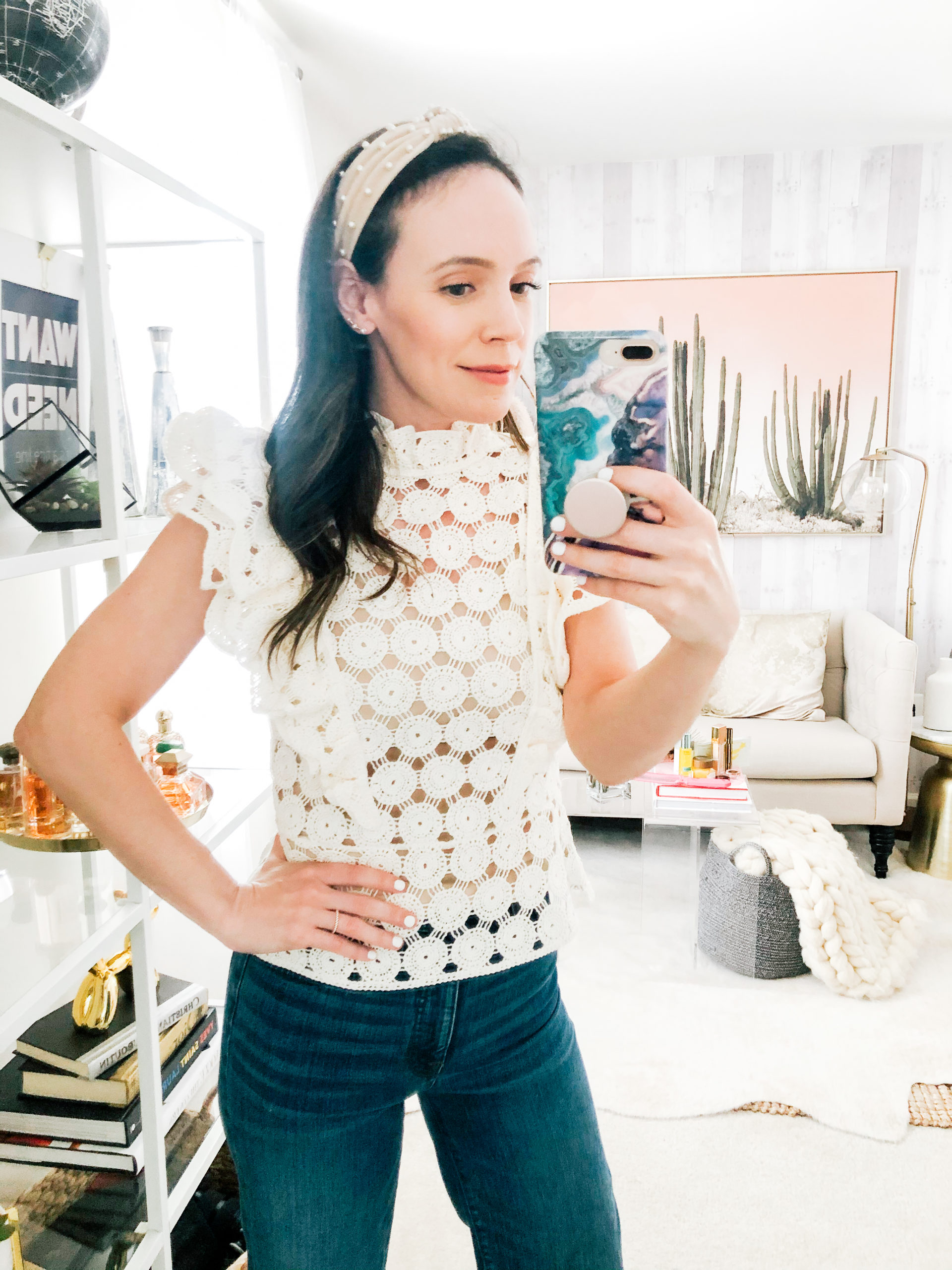 Top – H&M | Jeans – J.Crew (similar here) | Headband – Amazon | Earrings – H&M