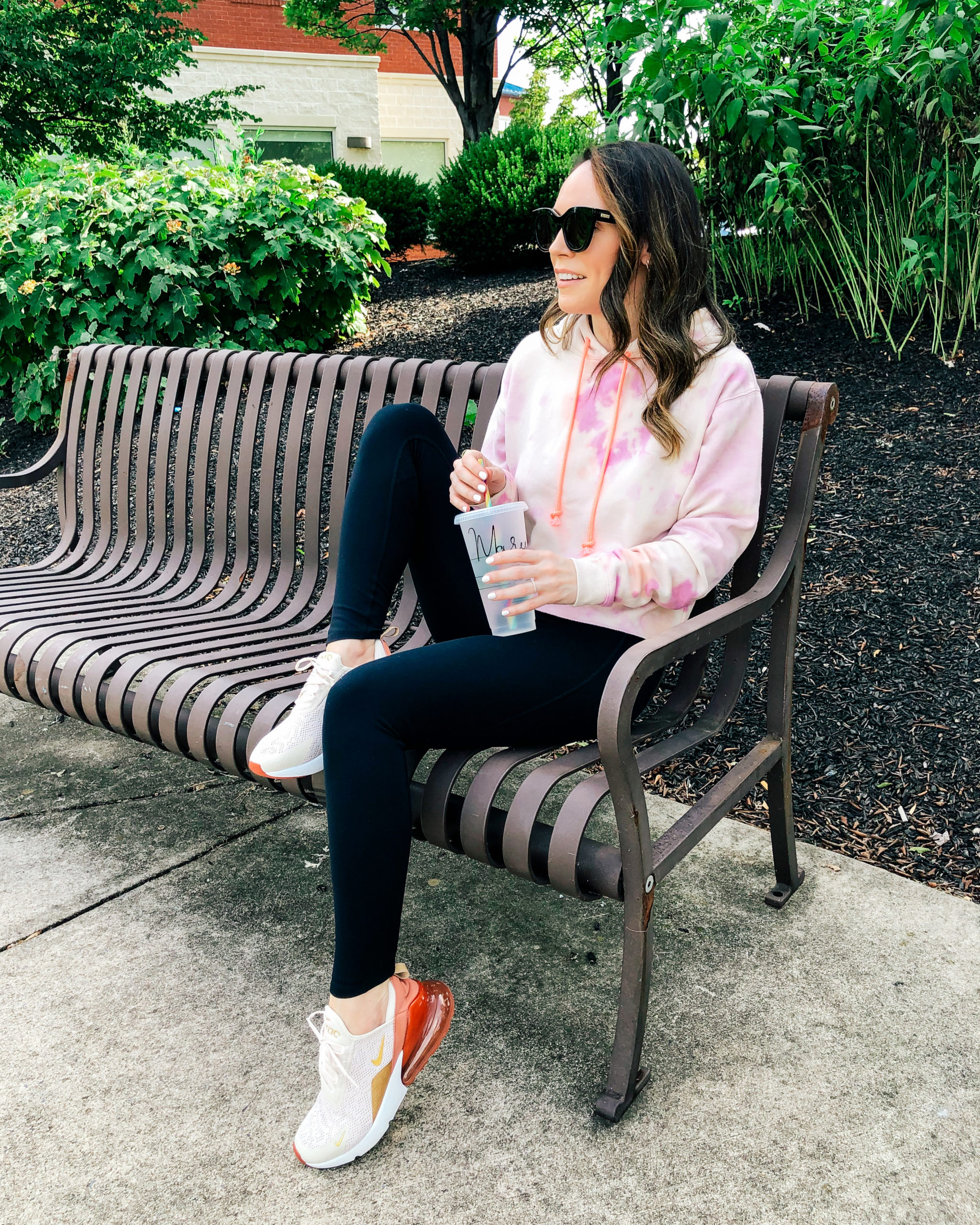 Hoodie – Target | Leggings – Zella | Sunglasses – Le Specs | Shoes – Nike | Water cup – Etsy