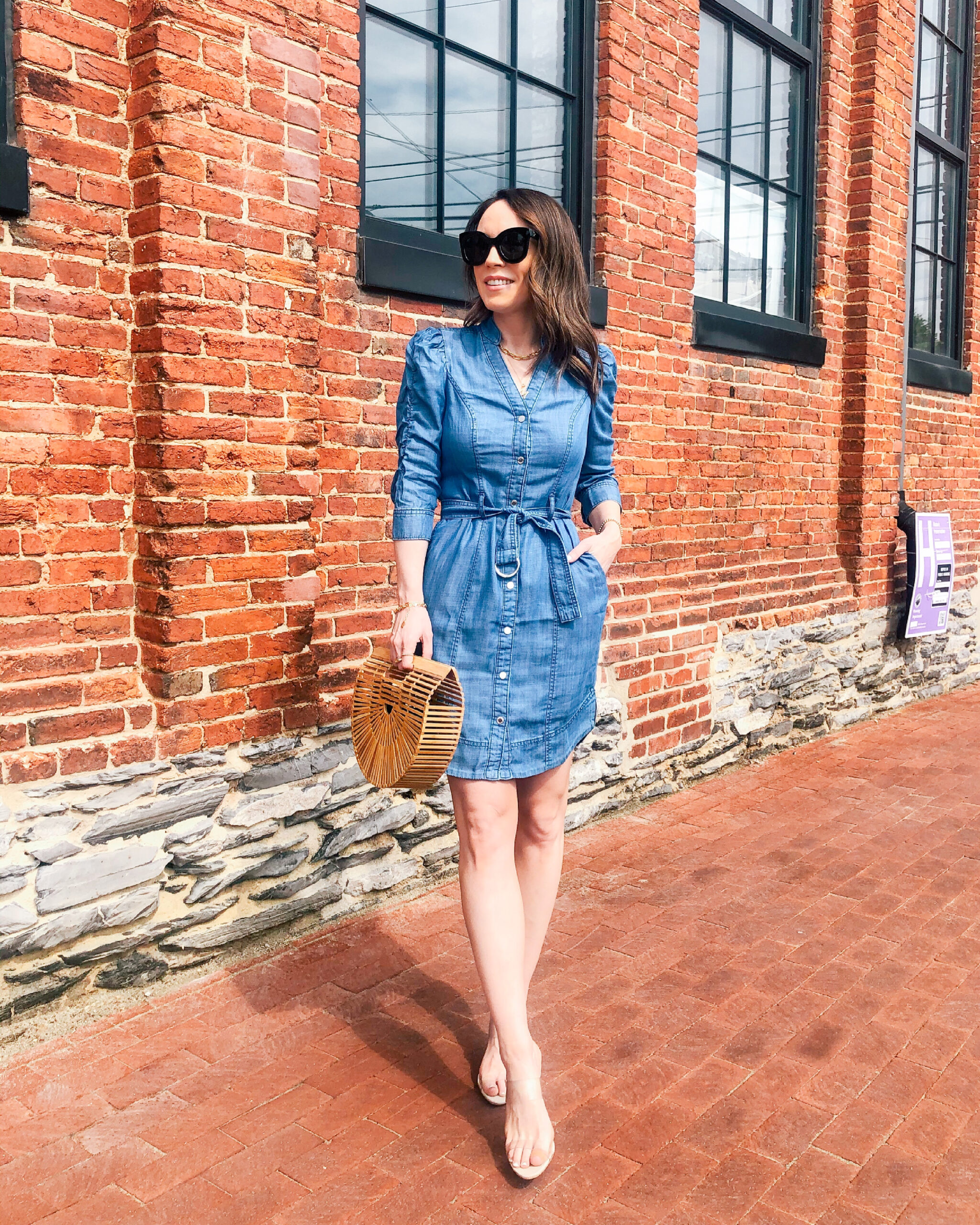 Dress – Treasure & Bond | Shoes – Veja | Jacket – Madewell | Sunglasses – Amazon | Bag – Chloe | Necklaces – Miranda Frye and Adornmonde