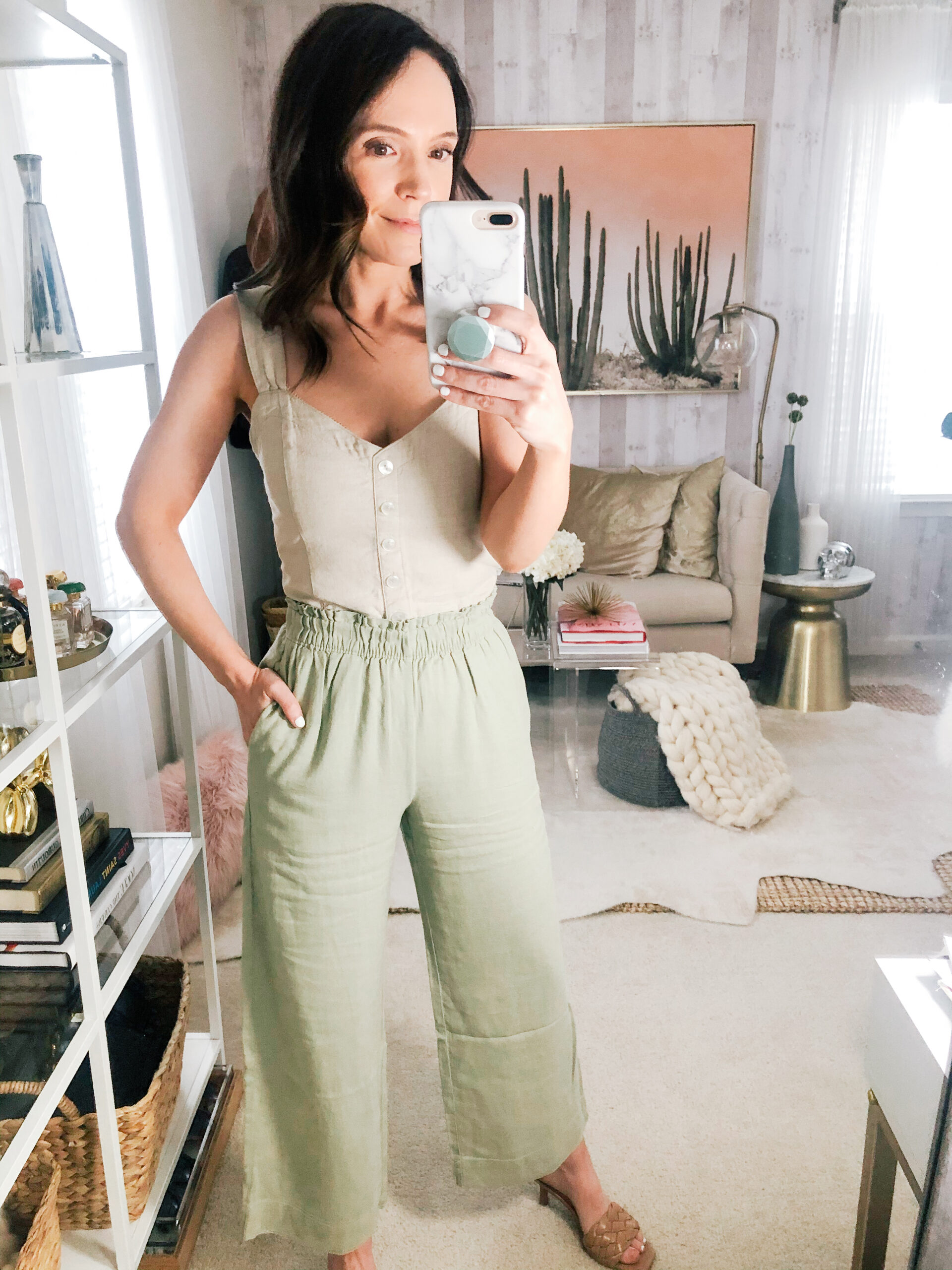 Top – Abercrombie | Pants – Abercrombie | Sandals – Express
