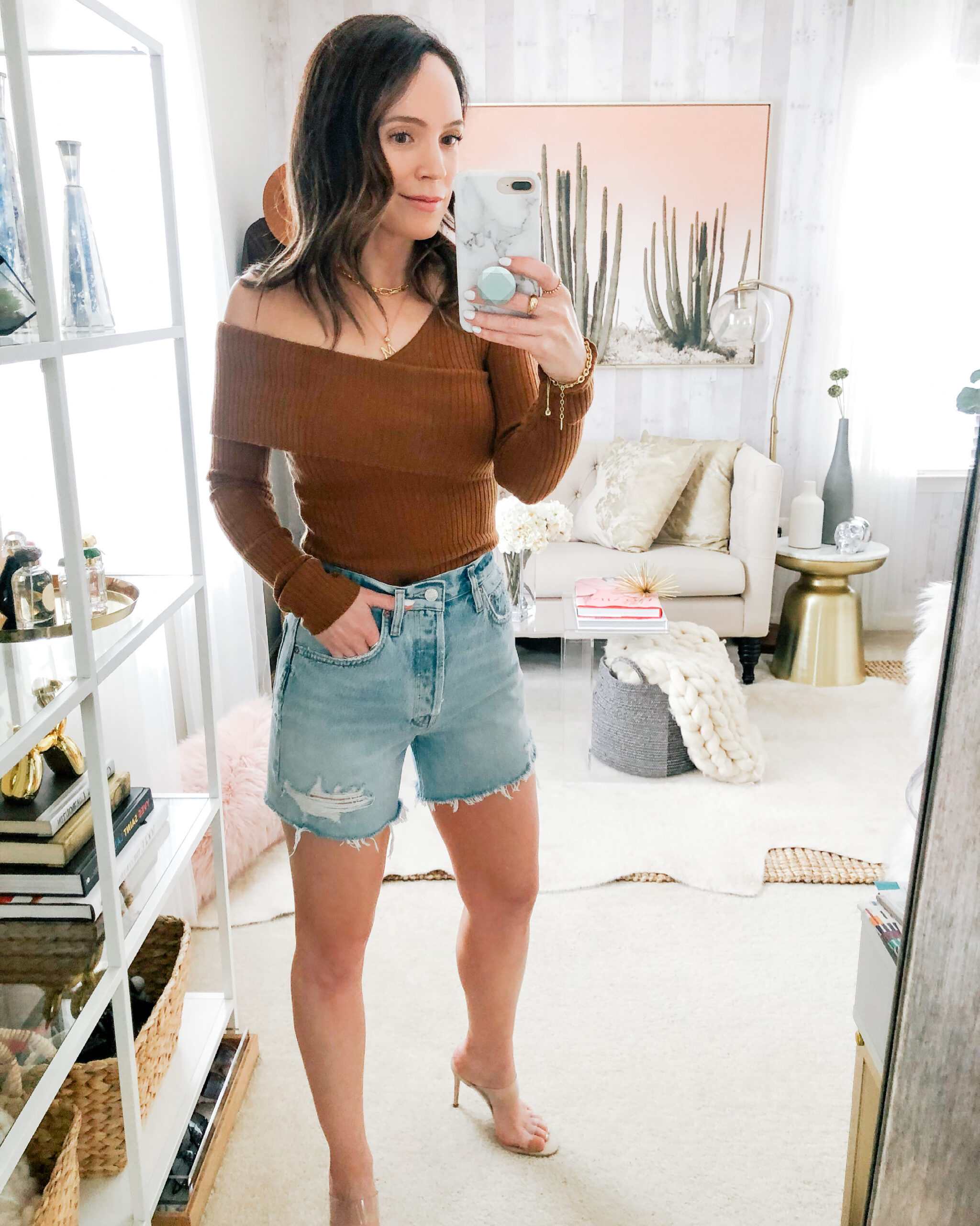 Top – Tularosa | Shorts – Agolde | Shoes – Jeffrey Campbell | Necklaces – Miranda Frye and Gorjana | Bracelets – Miranda Frye here and here
