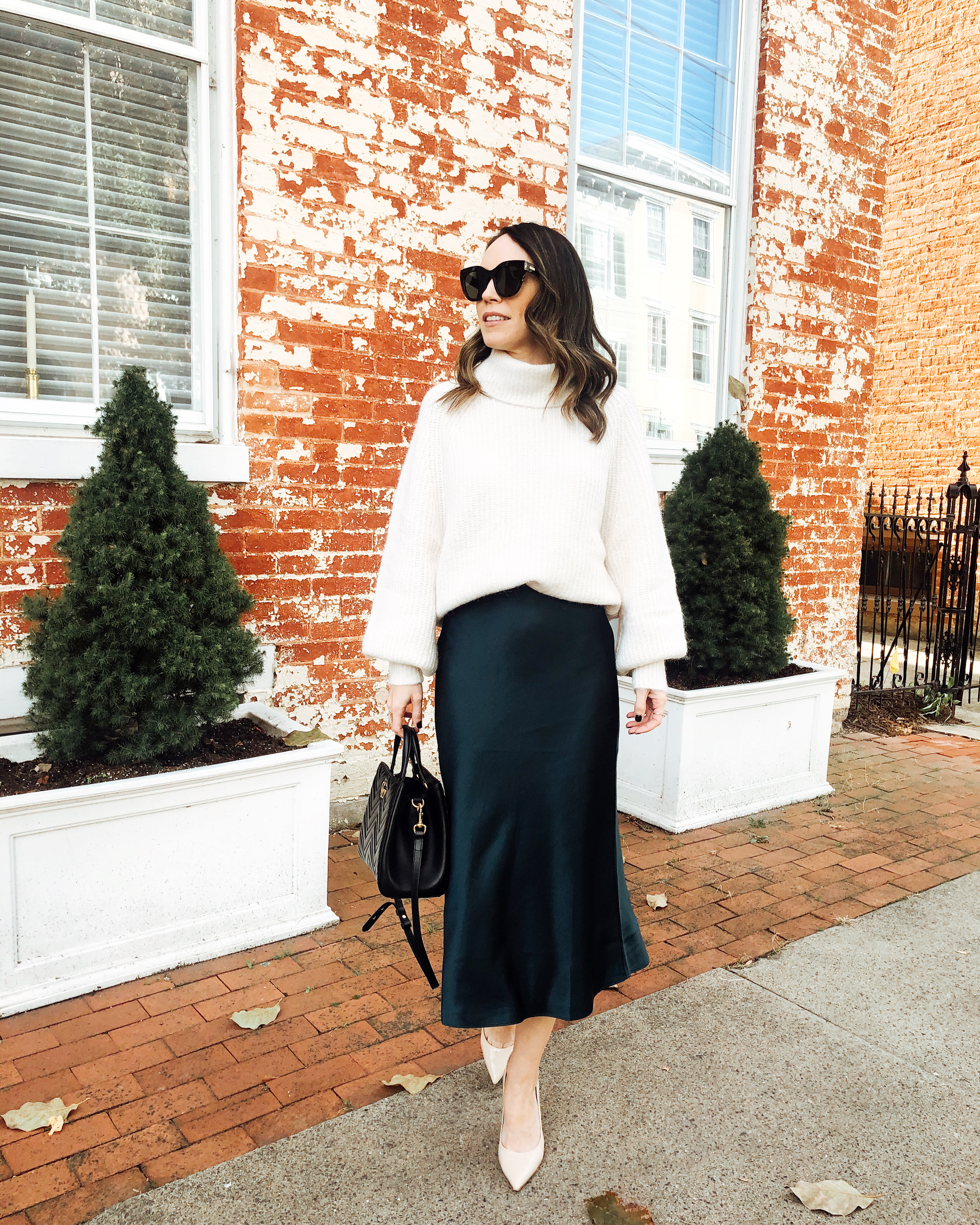 Sweater | Skirt | Sunglasses | Pumps | Bag