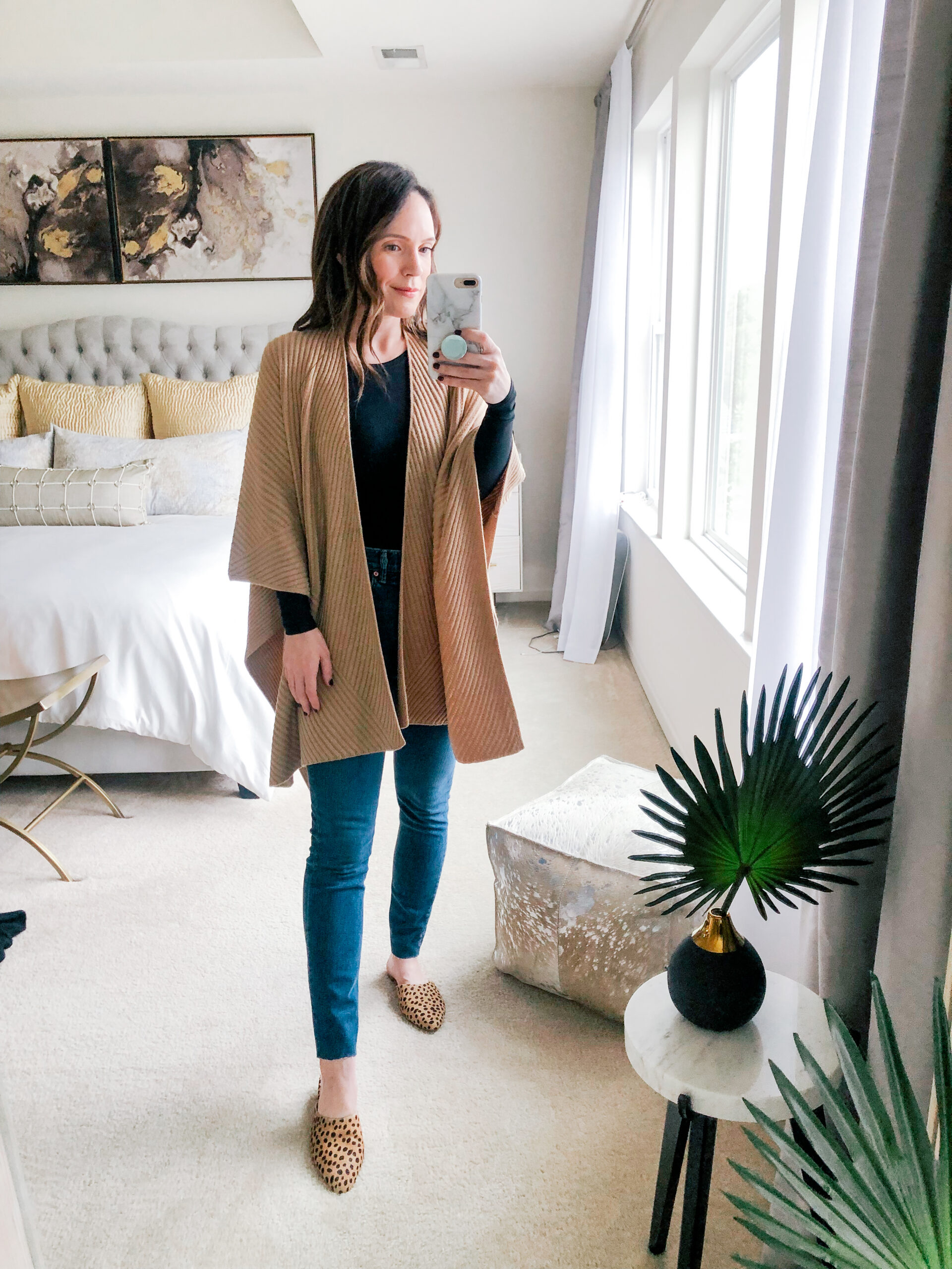 Poncho (similar here and here) | Bodysuit | Jeans | Mules (similar)
