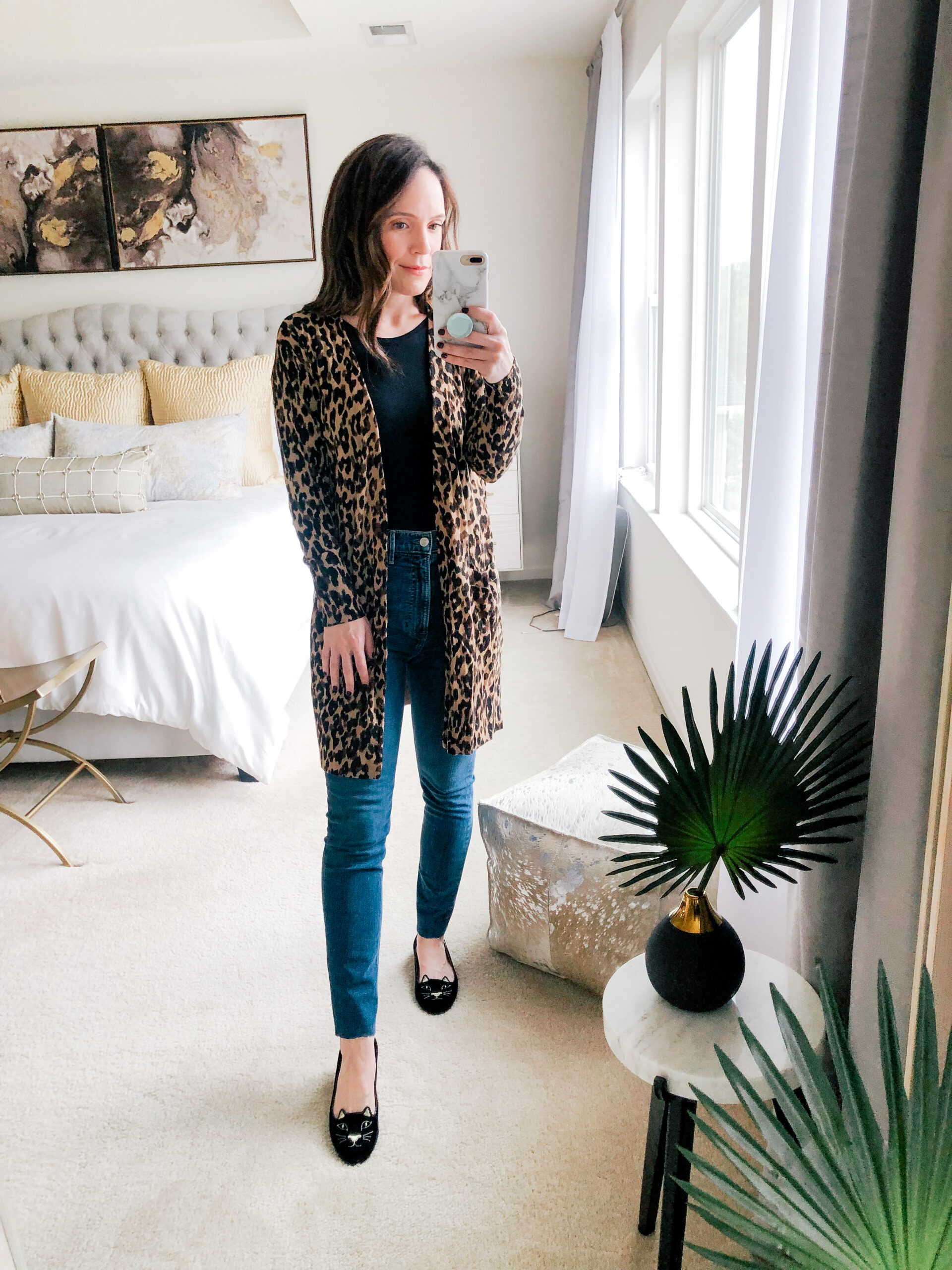 Cardigan (size down, runs big) | Bodysuit | Jeans | Mules (similar)