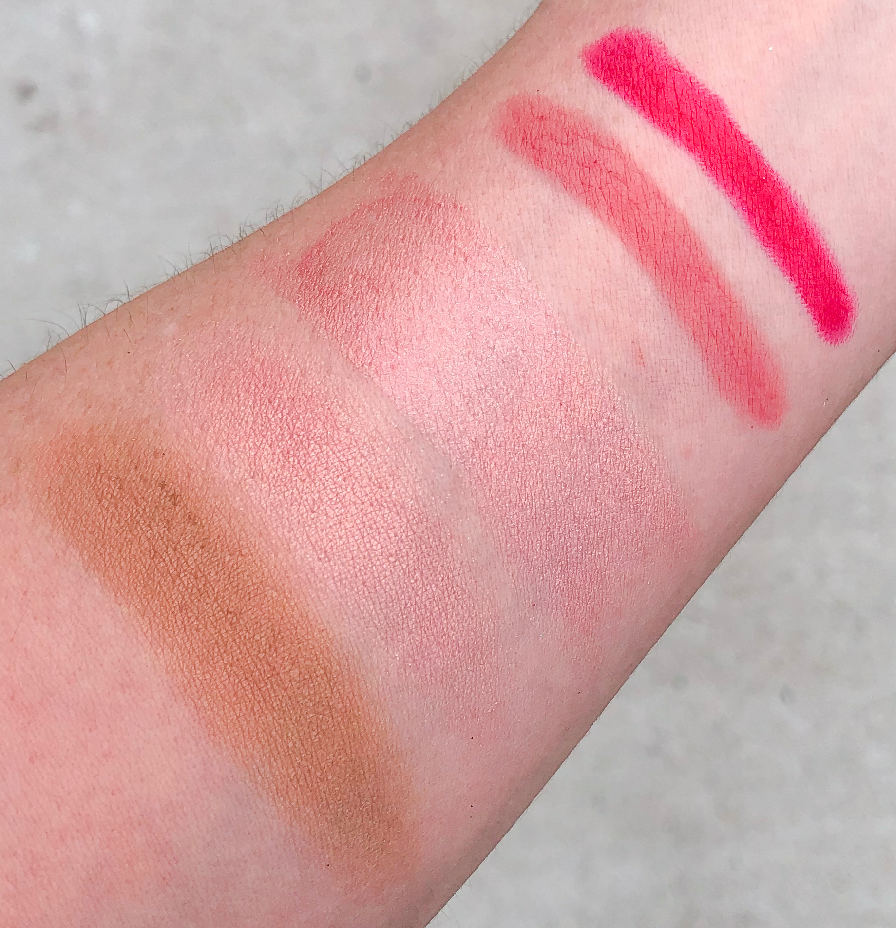 2. Lipsticks in Carmen, Mona and Barbara (swatches are on the right side) – These are part of the Audacious lipstick range so the formula is very pigmented and creamy. All three shades are best-sellers currently in the line and very wearable.