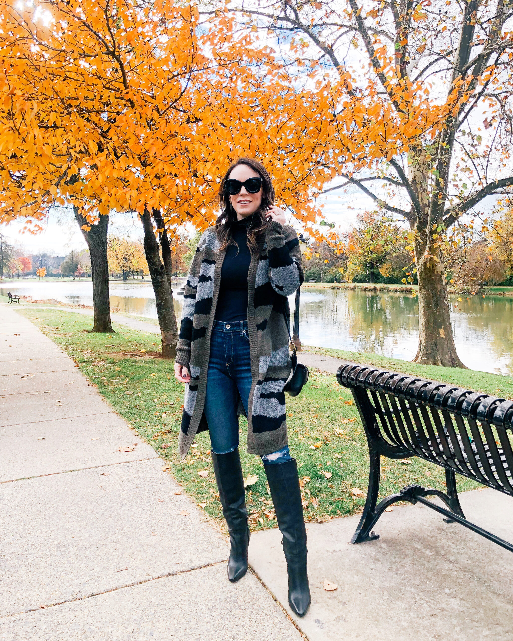 Cardigan – Target | Turtleneck – Spanx | Jeans – Rag & Bone (similar) | Boots – Vince Camuto (similar) | Sunglasses – Amazon | Bag – Chloe (similar)