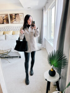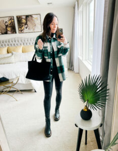 Shacket | Turtleneck | Leggings | Boots | Bag 1. How cute is this new color Summer Fridays just released in their fuzzy makeup bag? 2. A