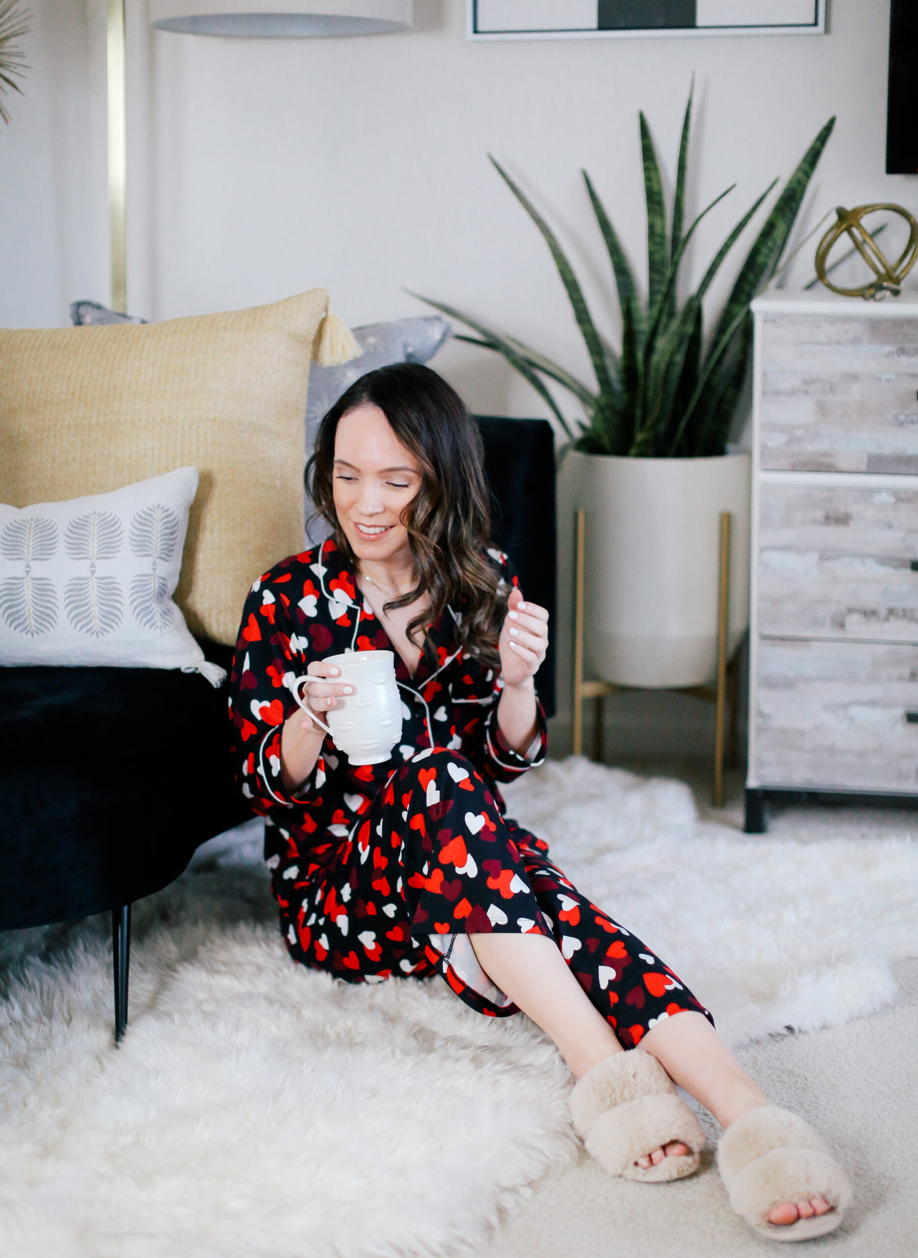 I went from wearing old sweatpants and a hanes t-shirt to bed to a drawer full of matching pajama sets! LOL I love getting dressed for bed now and it’s nice to have something I enjoy wearing to put on each night. I thought I would round up a bunch of chic pajama sets if you are looking to upgrade your bedtime attire.