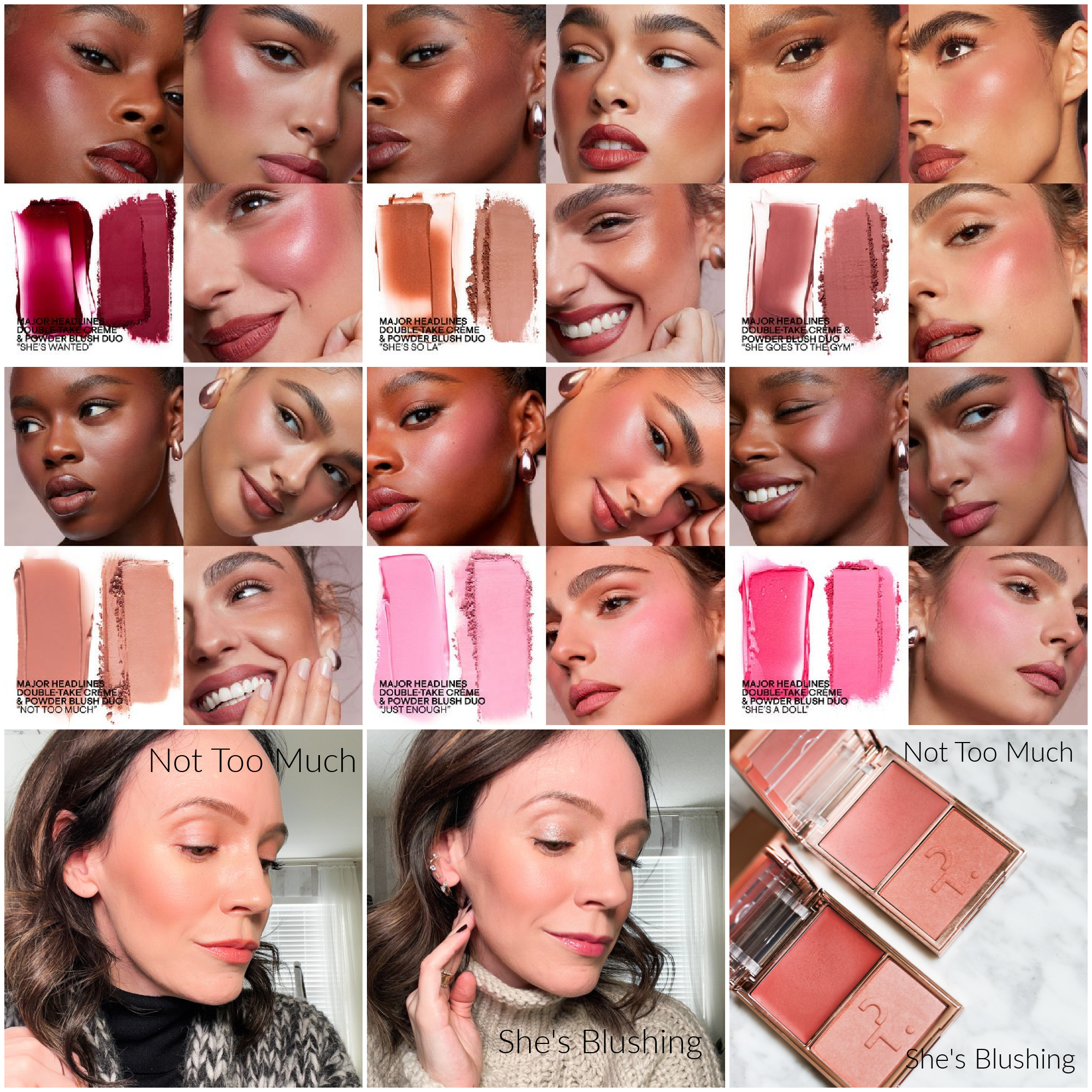 Patrick Ta Blush Duo SwatchesThe two shades that I have are Not Too Much and She’s Blushing. Both are quite subtle and perfect for everyday. Here is the full list of shades available and a short description of each: