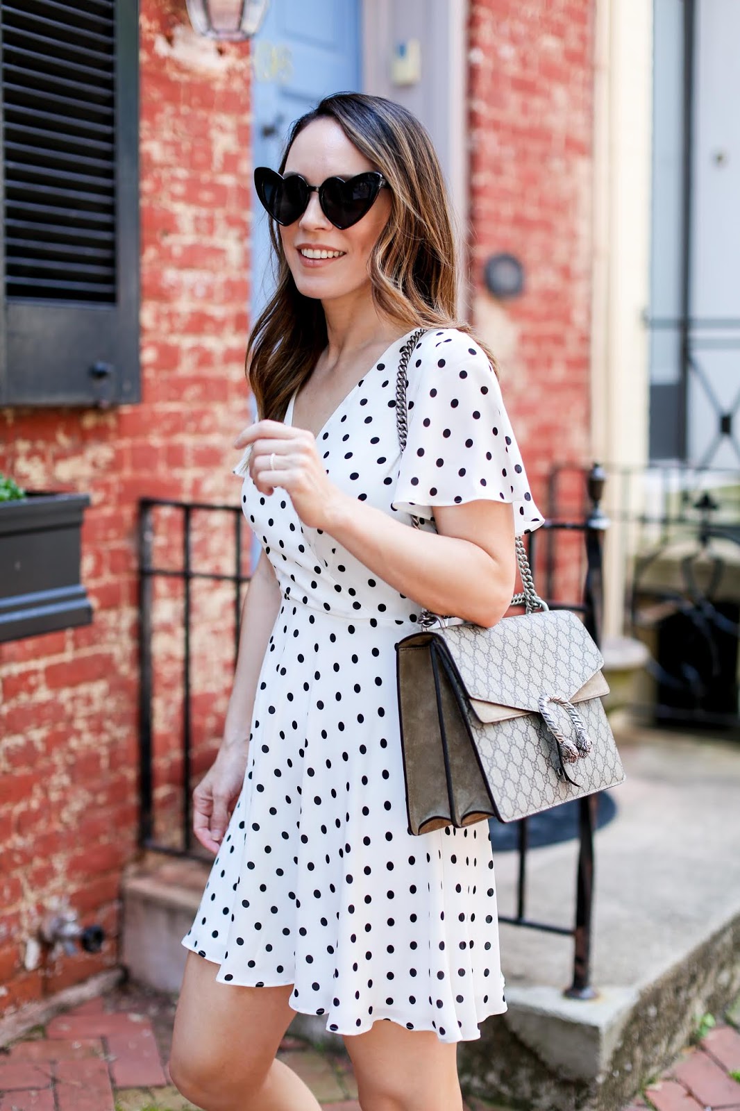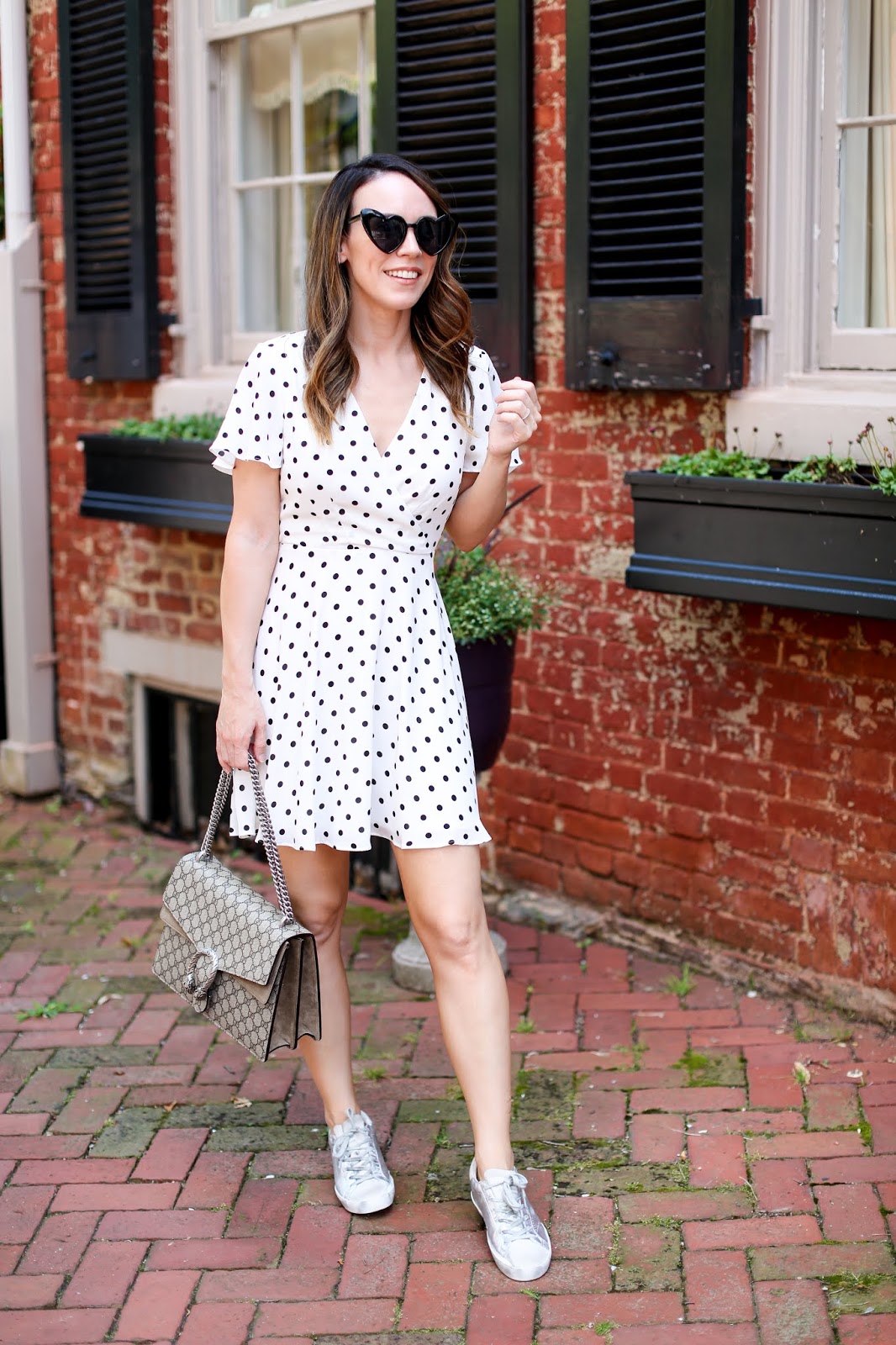 Dresses like this polka dot number are so key when it gets super hot because it’s comfortable yet still flowy. I didn’t want to wear my regular wedges, heels or sandals with it on this particular day, so I threw on my new Golden Goose sneakers that I snagged on super sale (this was the site but they are sold out now) and love how cute the whole ensemble looked! I’ve talked about my love for Golden Goose sneakers many times (I have two other pairs – see those here and here) not only because the designs and colors are everything, but because I can walk for HOURSSSSS and never get blisters. In fact, on this particular day I was remarking to Stan as we were walking around just how comfortable these sneakers are – even more so than my athletic sneakers that I work out in. In the past few months I have received numerous questions about sizing info and how Golden Goose sneakers run so I thought I would share in this post so anyone can reference it in the future. I’ve heard many different reviews but for me all the styles run true to size for me. I am a size 7 and buy the 37 each time. Currently I have the May and Superstar styles. If you are thinking of splurging, I highly recommend! Some of the sites that I typically go to for Golden Goose sneakers (and ones to check for sales) are Net-a-Porter, Shopbop, Bergdorf Goodman, SSense, Oxygen Boutique, Revolve and Nordstrom. Regarding sales, I’m going to be honest and say it’s hard to grab them because they sell out so quickly. Even when new styles launch, often they are gone within a few hours. The good news is they constantly come out with new colors, patterns and prints so you are guaranteed to find another pair you love.