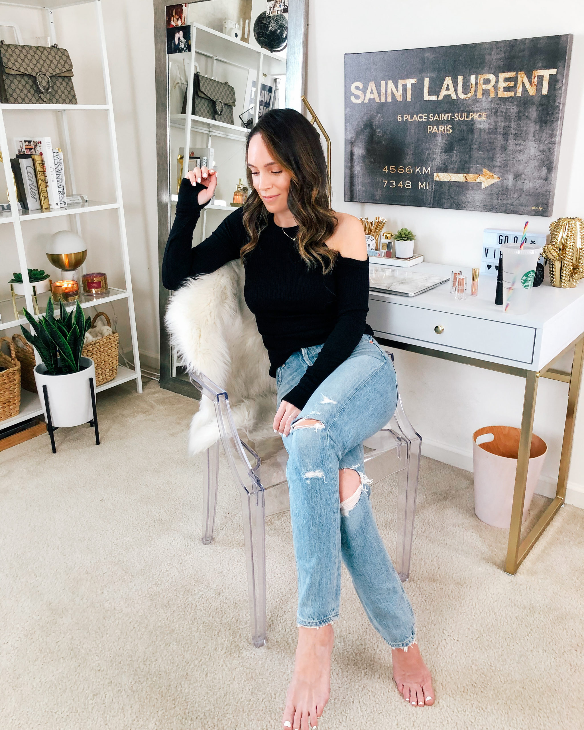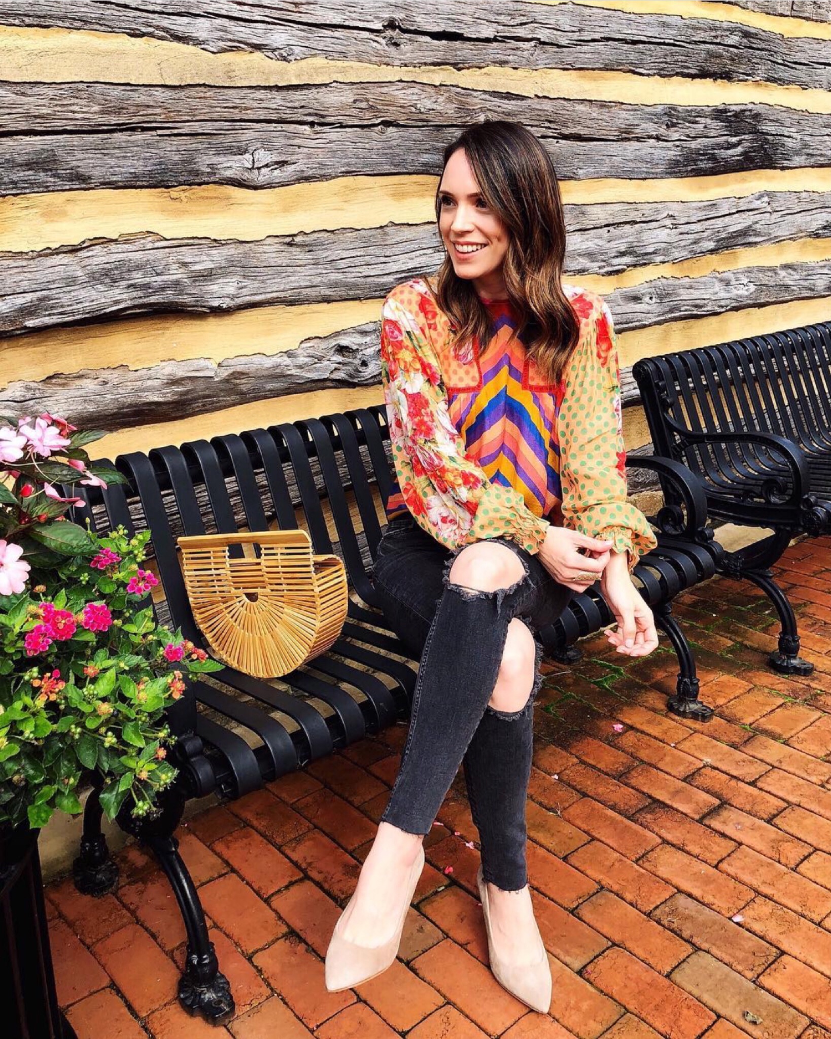 Blouse | Jeans (similar) | Shoes (similar) | Bag