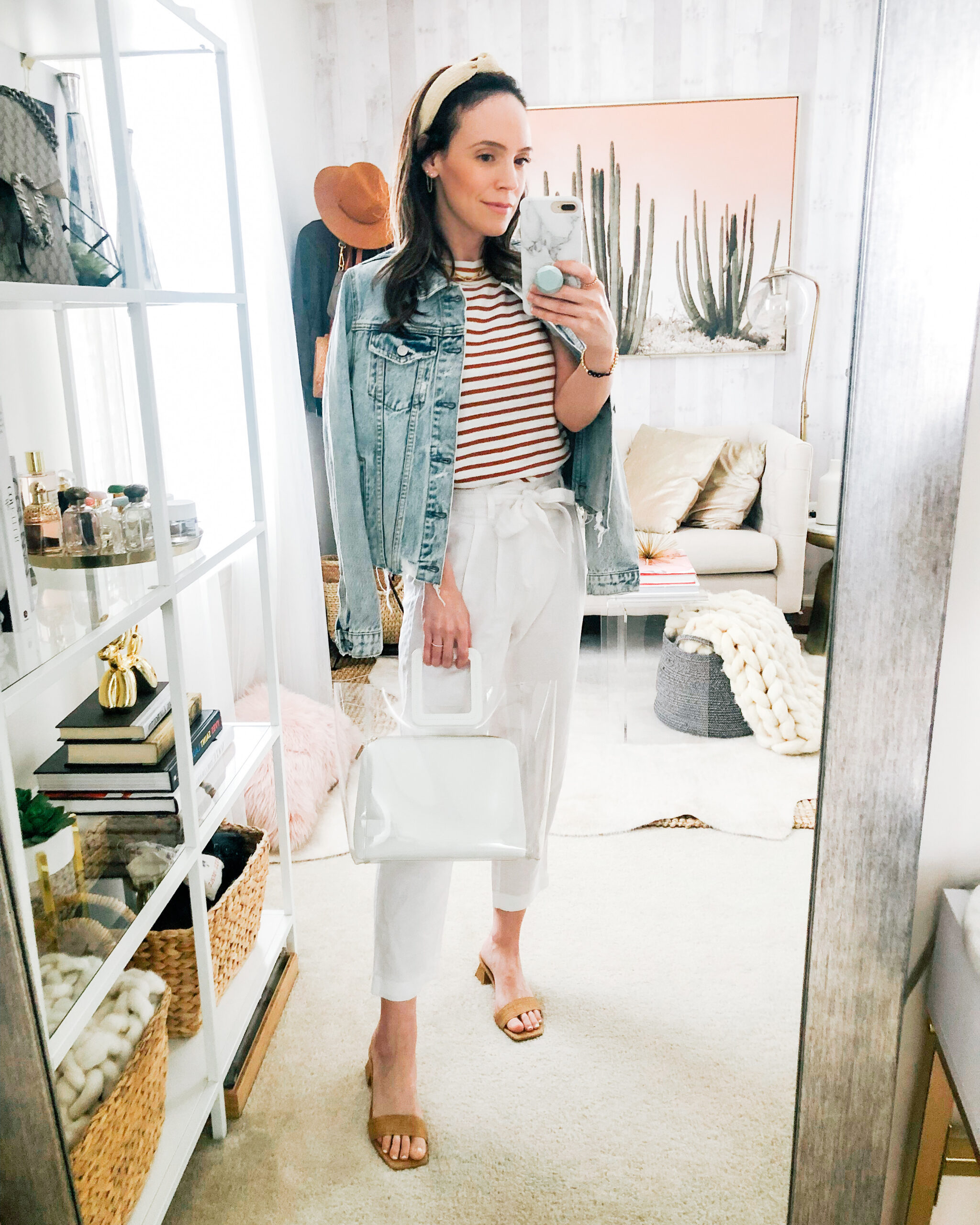 Jacket | Tank (similar) | Pants (similar) | Bag (similar) | Sandals | Headband