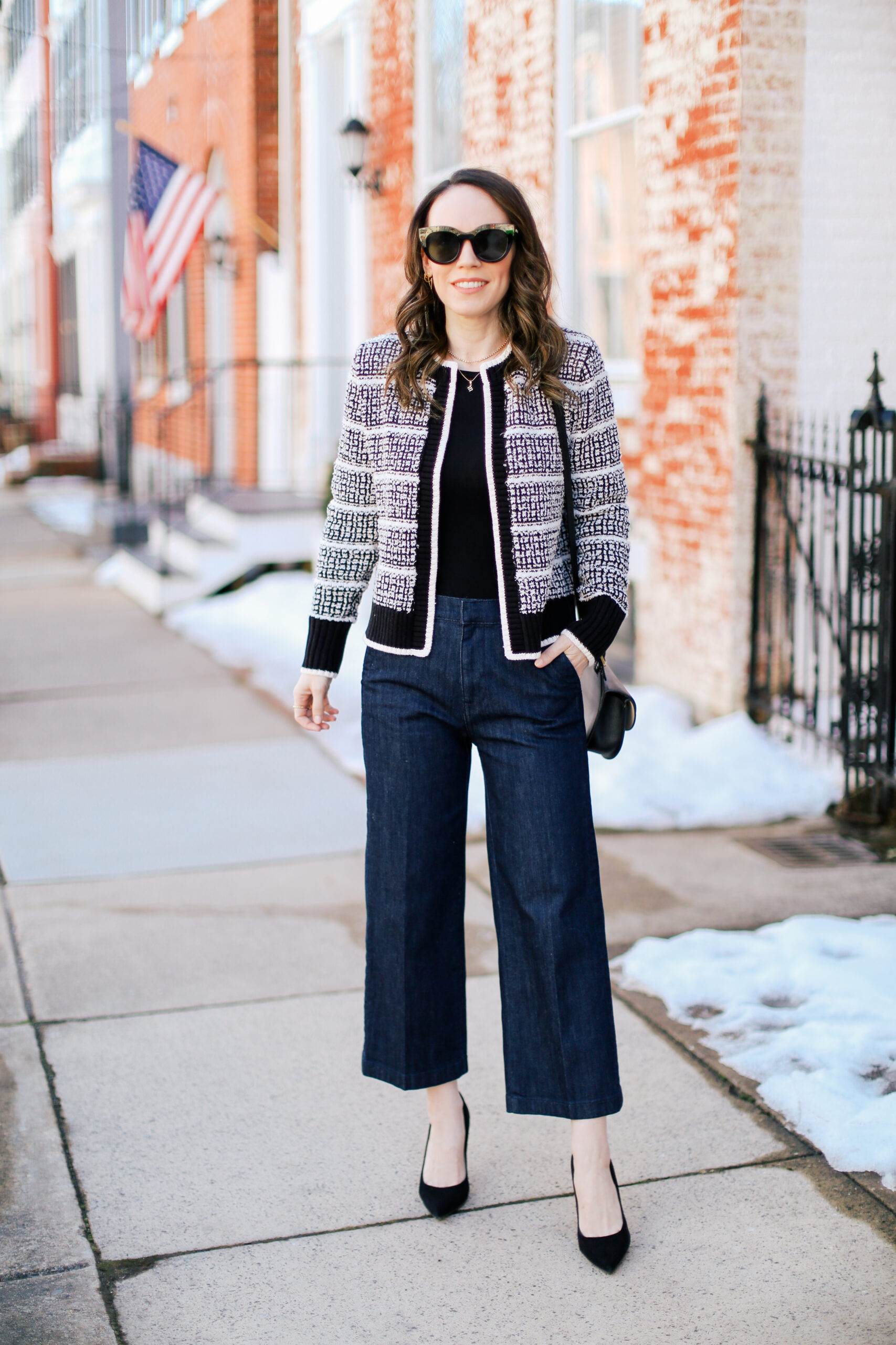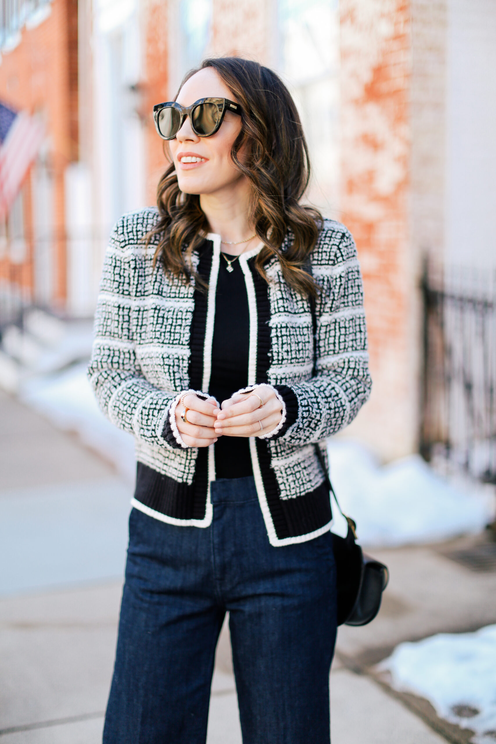 Cardigan – Loft | Tee – Halogen | Jeans – J.Crew (similar here) | Pumps – Something Navy (similar here) | Sunglasses – Le Specs | Bag – Chloe (similar here) | Necklaces here and here – Miranda Frye