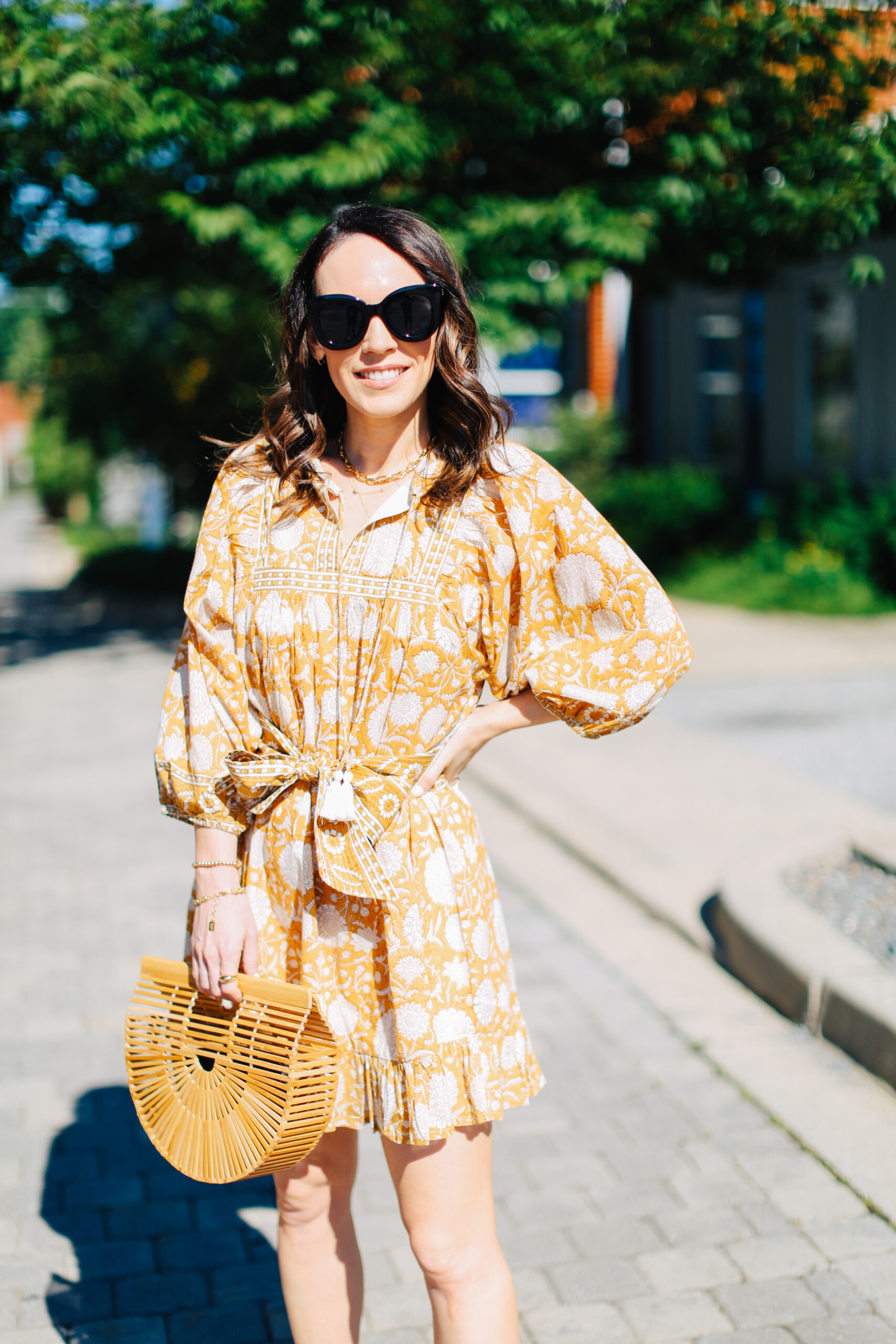 Dress – Cleobella (also love this one and this one by the same brand!) | Sandals – Jeffrey Campbell | Sunglasses – Amazon | Bag – Cult Gaia | Bracelets – Miranda Frye and Alexa Leigh | Necklaces – Miranda Frye, Evereve and Gorjana