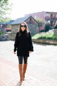 Sweater – Amazon | Leggings – Spanx | Shoes – Marc Fisher (similar) | Bag – Saint Laurent | Sunglasses – Amazon Sweater – L’Academie | Jogger