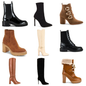 Black patent leather boots | Black sock bootie | Brown boots with buckle detail | Platform boots | Cream knee high boots | Combat boots | Cognac