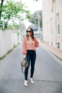 Blouse – Anthropologie (it sold out so quickly so here and here are similar options) | Jeans – Express | Shoes – Dee Ocleppo (similar) | Bag