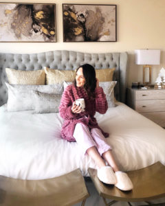 Robe | Pajamas | Slippers | Mug | Nightstands | Lamps | Lumbar pillow | Euro pillow shams | Bedding This is one of my favorite gift