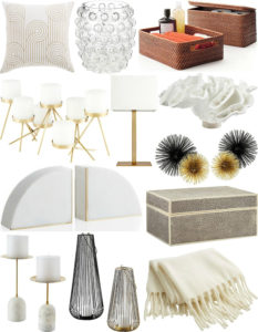 Pillow | Votive Candle | Baskets | Multi Pillar Candle Holder | Lamp | Coral | Marble bookends | Decorative Urchins | Jewelry Box | Marble and