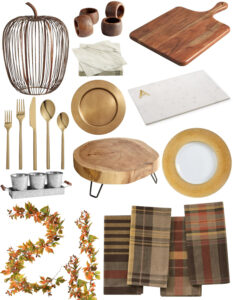 Pumpkin hurricane | Napkin rings | Marble print napkins | Cheese board | Silverware | Charger plates | Marble board | Condiment server | Cheese boards |