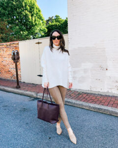 Sweater – Amazon | Leggings – Spanx | Shoes – Marc Fisher (similar) | Bag – Saint Laurent | Sunglasses – Amazon Sweater – L’Academie | Jogger