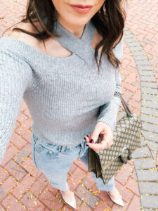 Sweater – 1.State | Jeans – Superdown | Shoes – Manolo Blahnik (similar here) | Bag – Gucci Top – Amazon | Jeans – J.Crew (similar here)