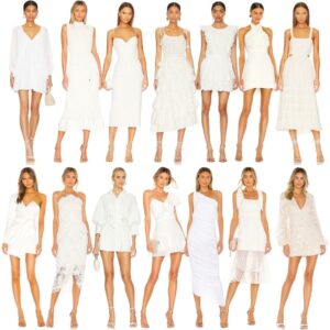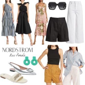 Striped dress | Black dress | Floral midi dress | Sunglasses | Shorts | White jeans | Silver shoes | White slides | Earrings | Tank |